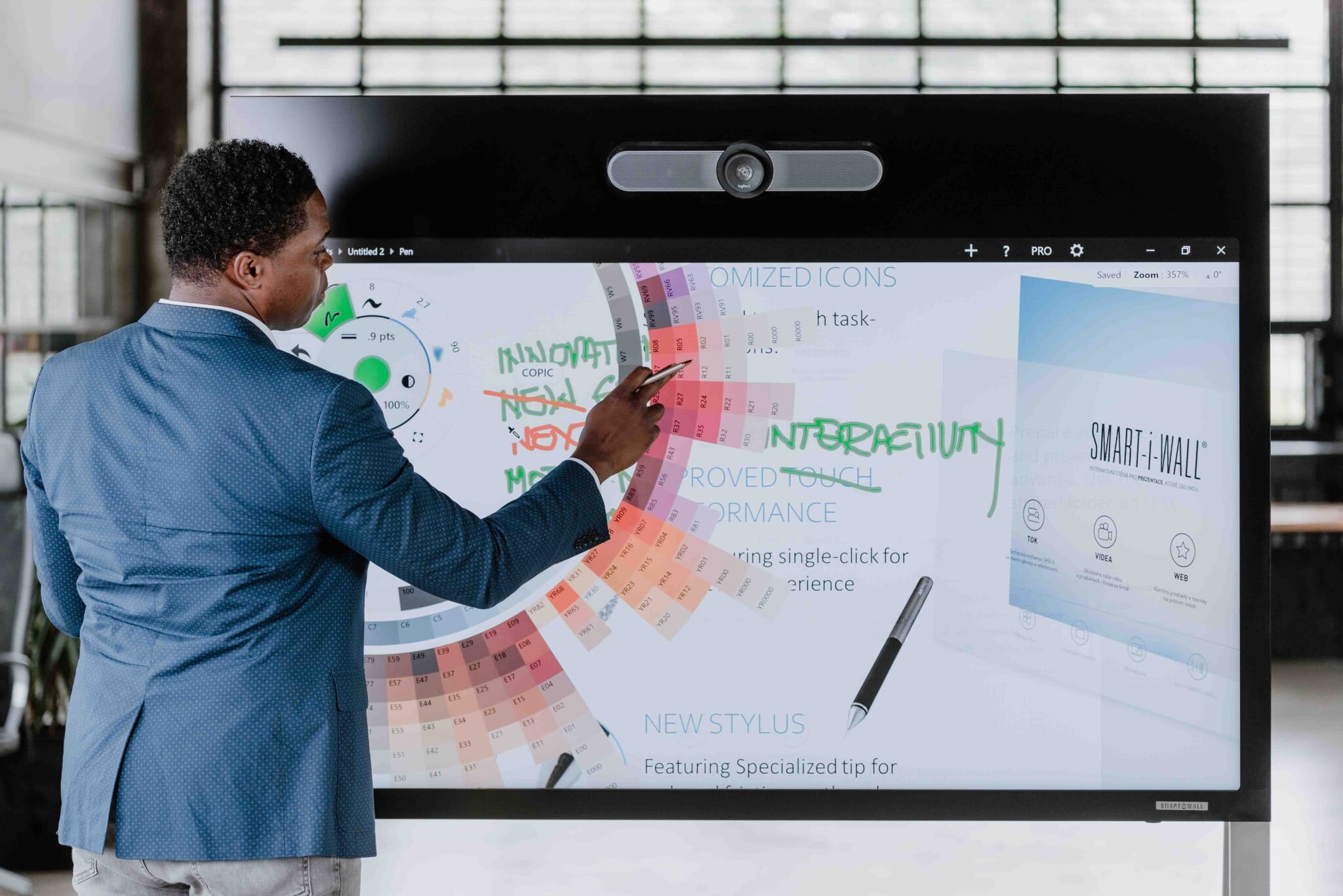 Šéf přichází do místnosti, nemusí nic nastavovat, jedním dotykem spouští videokonferenci, dalším připojuje celý tým a sdílí na obrazovku potřebné dokumenty. Dalšími dotyky nebo i gesty rozjíždí prezentaci, kterou skvěle vidí všichni v místnosti i kolegové připojení na dálku, třeba na druhém konci světa. Přímo na SMART-i-WALL píše poznámky jako na whiteboard, prstem či stylusem rozděluje úkoly. Všichni mají pocit, jako by byli na místě, šéfovi face to face. Tohle je prostě jiná liga.