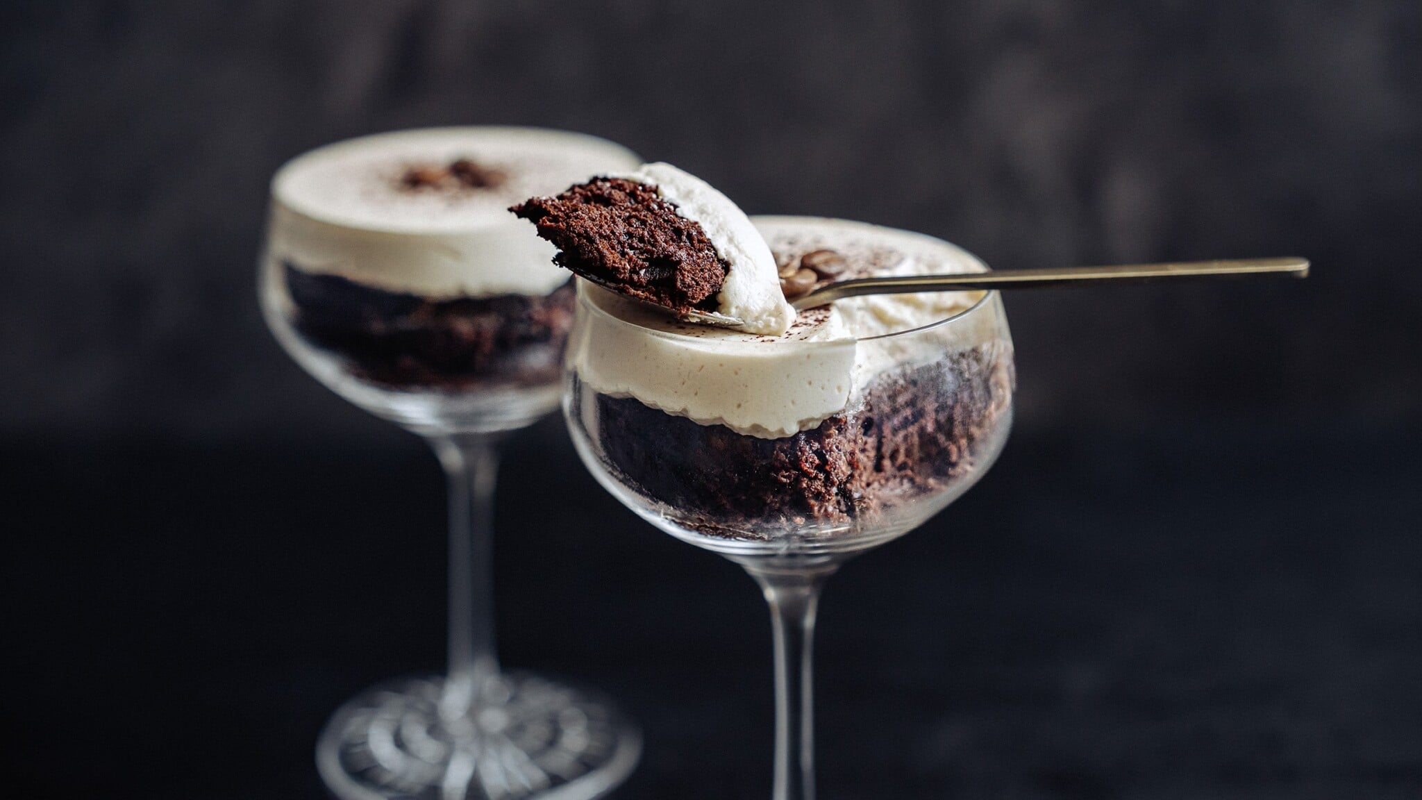 Transformujte legendární koktejl Espresso martini do vtipného dezertu! Základem je hutné čokoládové brownie nasáklé kávou a likérem, které přímo ve skleničce elegantně doplňuje nadýchaný krém z mascarpone a šlehačky. Zkrátka nezapomenutelné zakončení vaší příští večeře!