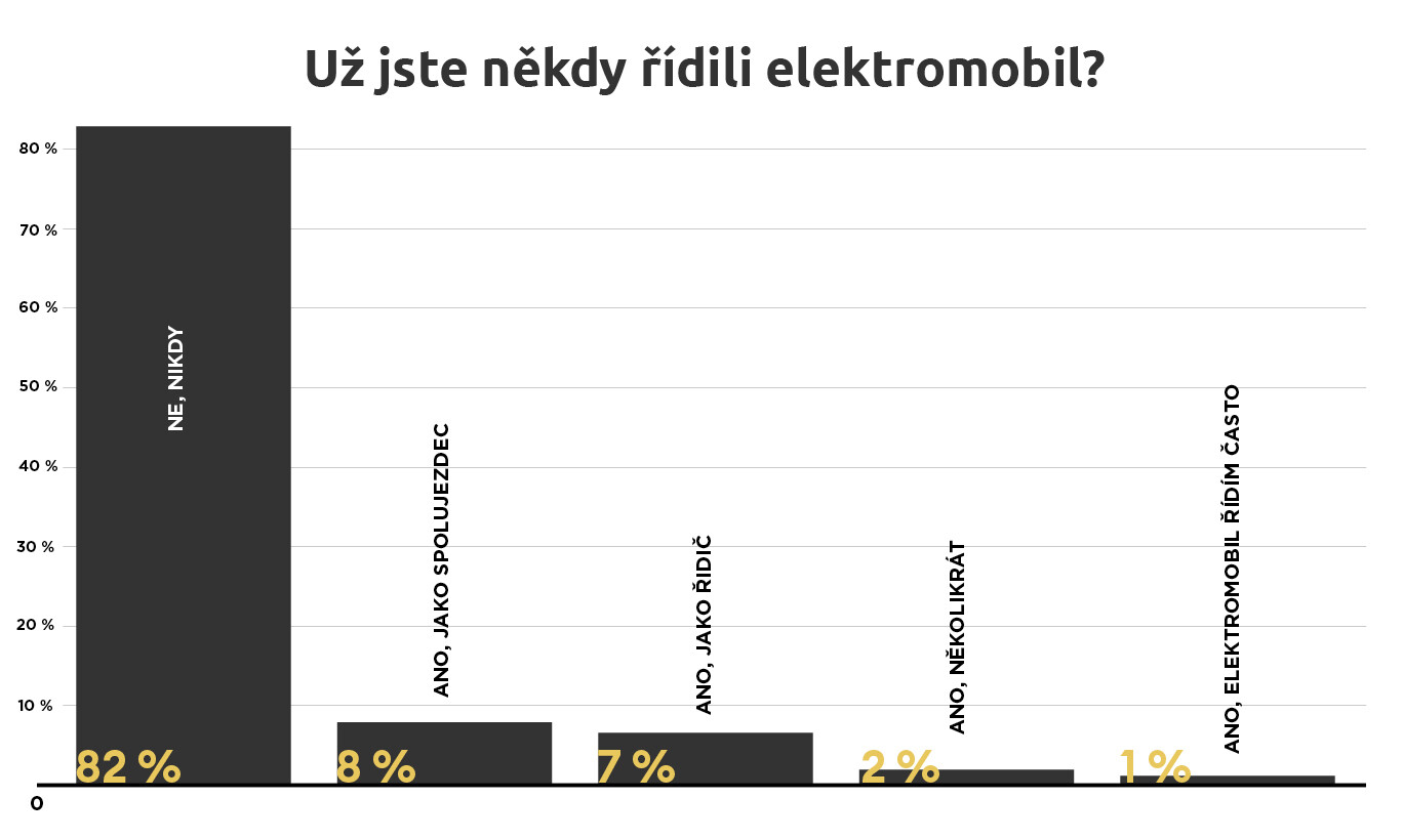 Odmítání elektromobility ale v Česku připomíná odmítání nikdy neochutnaného jídla. Elektromobil nejenže nikdy neřídilo, ale dokonce v něm vůbec nejelo 82 procent dotazovaných řidičů.