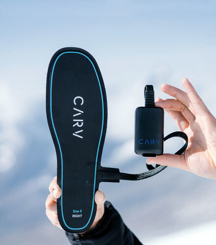 Tohle je váš nový digitální instruktor lyžování, seznamte se. Carv pomocí senzorů umístěných v botě a na noze snímá vaši techniku lyžování, aplikace v mobilu ji vyhodnotí a do sluchátek vám rovnou poradí, jak jízdu upravit. Kontroluje třeba, jestli nemáte váhu moc na patách anebo jestli řežete oblouky se správným poloměrem.