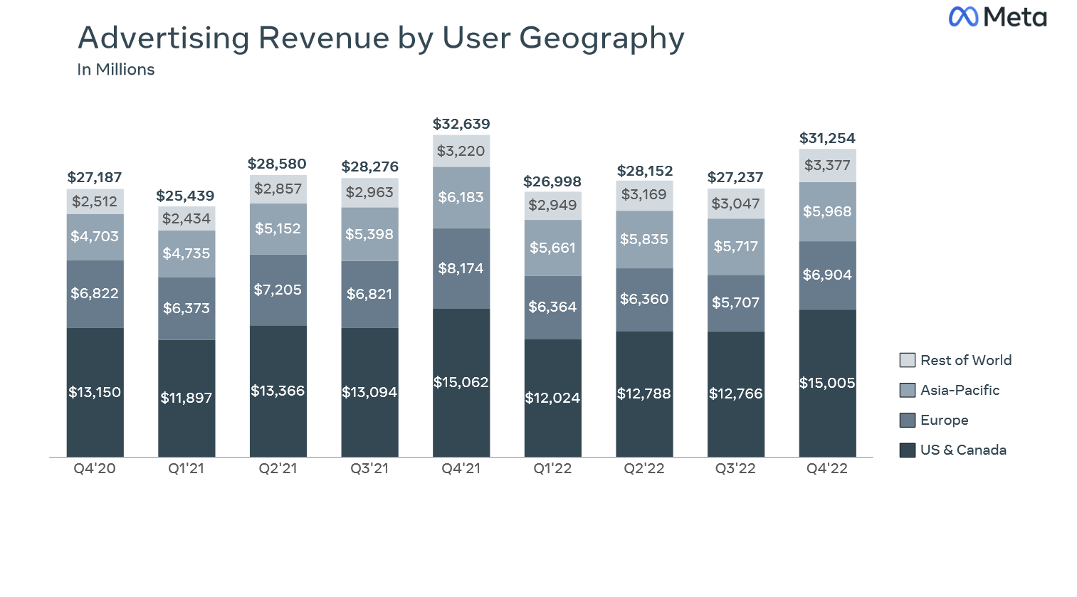 Výnosy z reklam se však meziročně propadly o více než čtyři procenta na zhruba 31,5 miliardy dolarů. Poslední kvartál roku se proto Mark Zuckerberg chytil za hlavu a dostává firmu zpátky do formy, tedy alespoň prozatím. Podle ve středu oznámených finančních výsledků za čtvrtý kvartál se Zuckerbergovi daří velmi pomalu obracet nelichotivý trend propadu tržeb. Výsledek je ale zatím pořád přinejlepším na trojku.