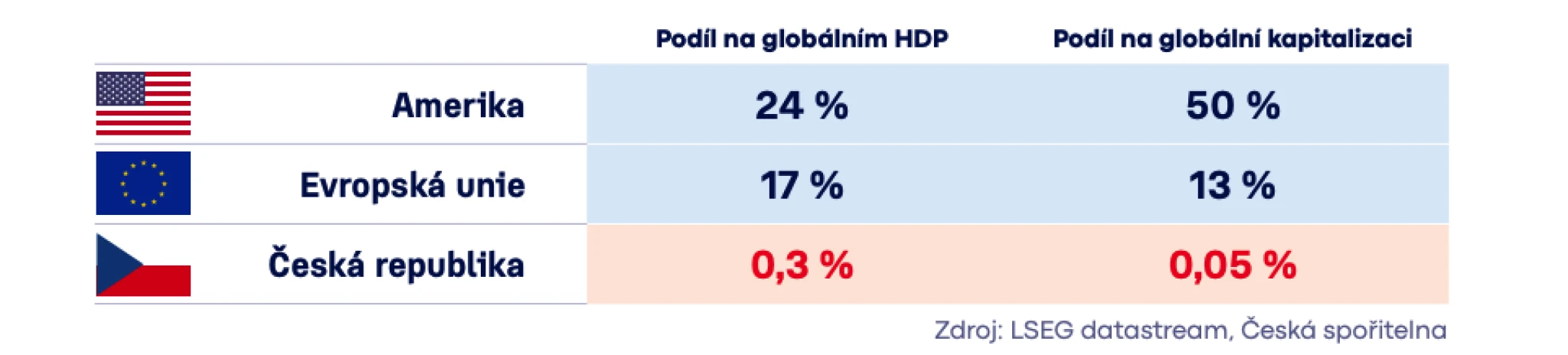 Navzdory zkazkám o chabé inovativnosti starého kontinentu má Evropa registrovaných výrazně více startupů než Spojené státy. Jenže tam problém neleží, ten tkví v kapitálových trzích. Zatímco Spojené státy se podílí na globálním HDP ze čtvrtiny, představují polovinu globálního kapitálového trhu. U Evropy je trend opačný: má vyšší zastoupení v celkovém HDP než na kapitálových trzích.