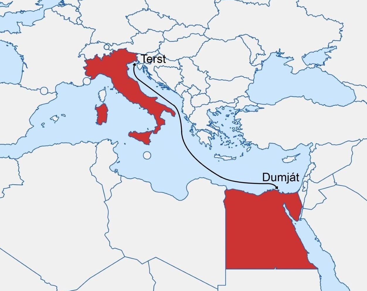 Celá trasa sestává kromě zmíněného Terstu a Dumjátu v pozemní cestě do Safagy, egyptského města na východě země, pobřeží Rudého moře, odkud už je snadný přístup na trhy zemí Zálivu, jako jsou Spojené arabské emiráty, Kuvajt, Omán či Katar.