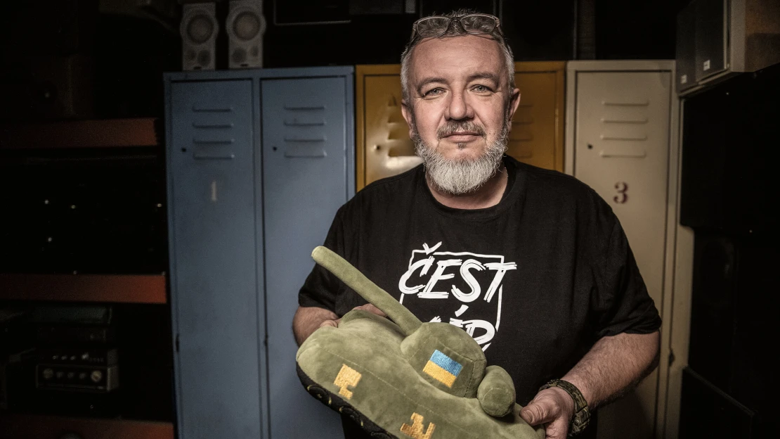 Sešli jsme se v jeho pražském bytě týden před výročím 17. listopadu, dnem, kdy na Letenské pláni přistál vrtulník Black Hawk. Stroj s obrázkem lva chystajícího se ke skoku a se jménem Čestmír je další zbraní, která má pomoci ukrajinským vojákům ve válce s Ruskem. Než k nim ale doletí, bude to stát přesně 105 milionů korun. Peníze, kterými přispějí dárci do sbírky Dárek pro Putina.