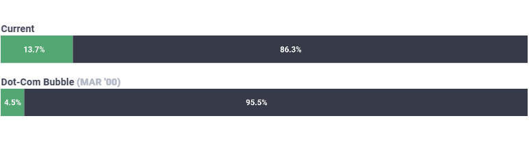 Naproti tomu na vrcholu internetové bubliny byla jeho hodnota v průměru jen 25. Nejvýše se zatím letos index vyšplhal na hodnotu 37 a lehce tak překonal maximální hodnotu v roku 2000, kdy se index zastavil na 33.