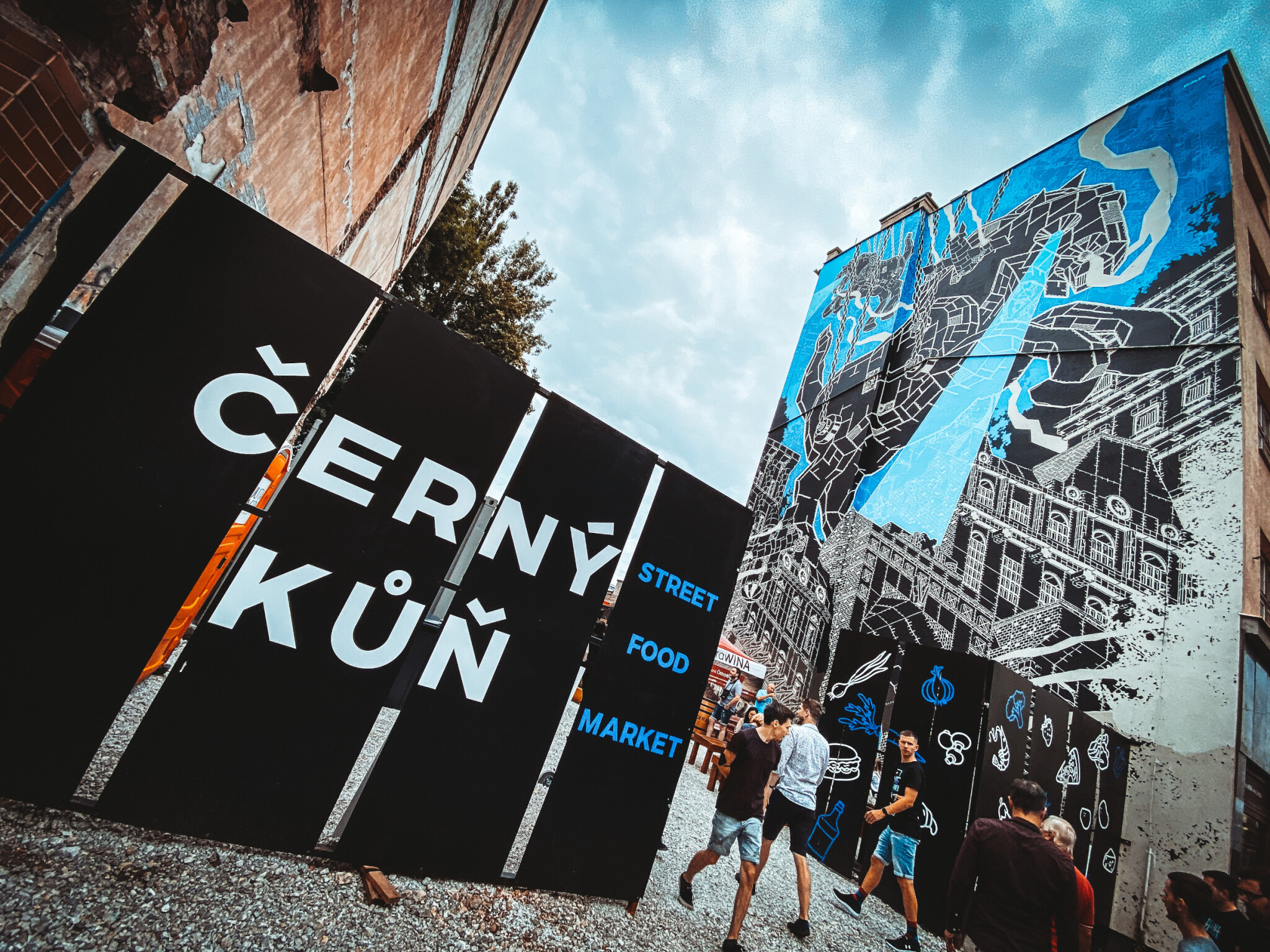 Svůj market však nakonec Jelínek po dohodě s městem ještě se dvěma společníky posunuli zhruba o dvě stě metrů dál do proluky v Nádražní ulici, pod ikonickou nástěnnou malbu koně. Díky tomu zhruba 700 metrů čtverečních velký prostor získal název Černý kůň.