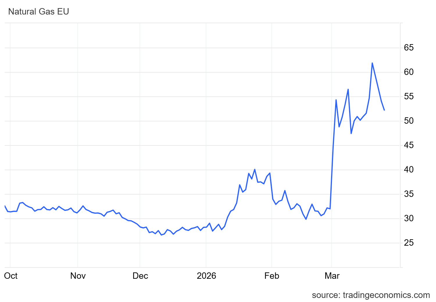 Spotové ceny zemního plynu na evropském hubu TTF, jenž určuje ceny pro evropský trh, klesly o více než pět procent k 51 eurům za megawatthodinu. Oproti minulé středě, kdy cena těchto dlouhodobých kontraktů překračovala 62 eur za megawatthodinu, jde o pokles zhruba o jednu pětinu.