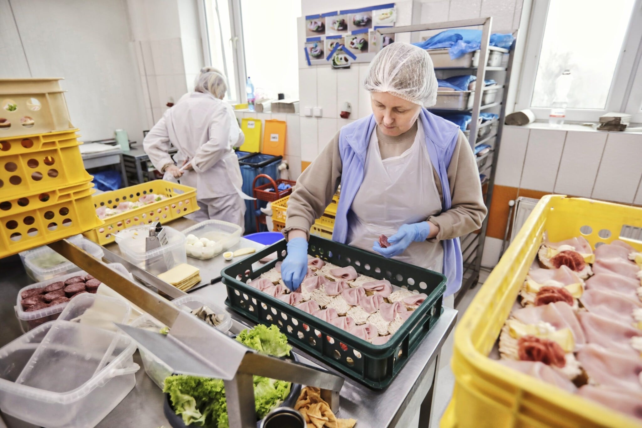 Po teplu zákonitě přichází zima. A tak se přesouváme do dalšího patra, kde se vyrábějí chlebíčky, bagety či obložené housky.