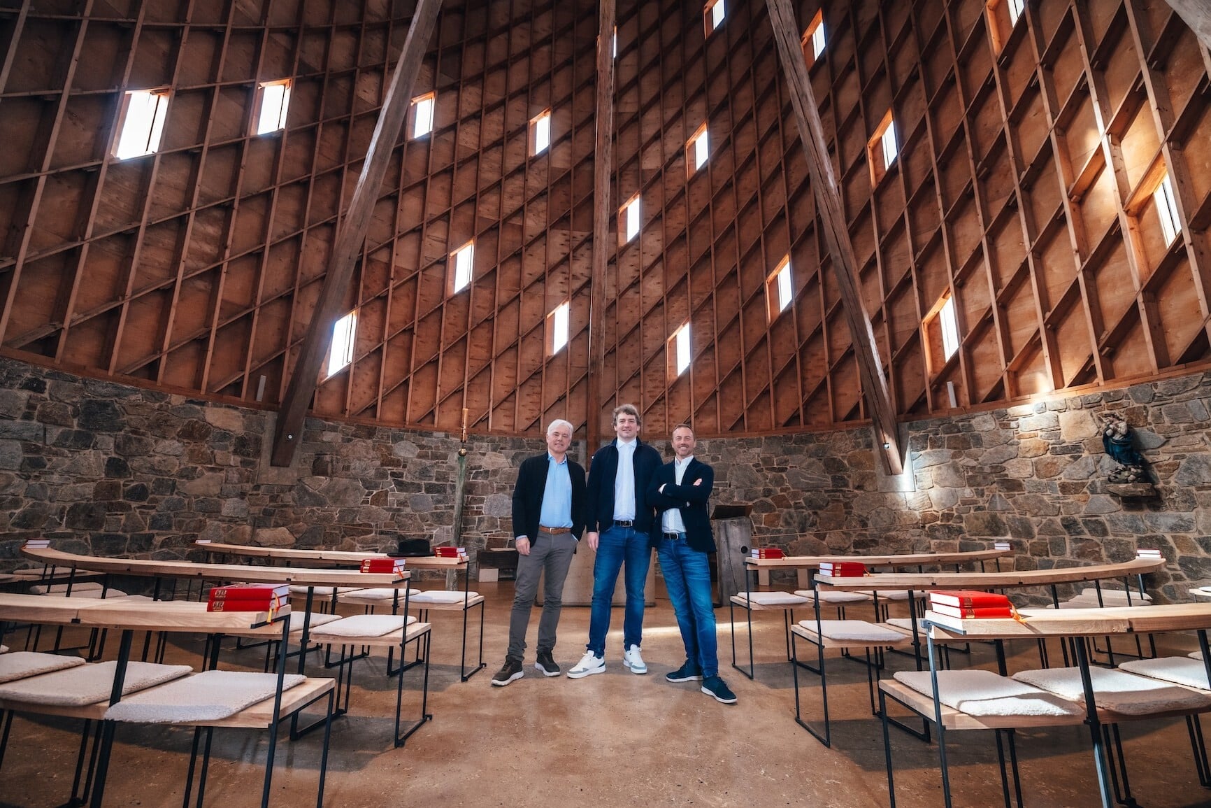 Se stejnou hrdostí pak oba kousek od Telnice spolu s dalšími členy managementu rodinné firmy stojí před unikátní kaplí Panny Marie Bolestné v Nesvačilce od Jana Říčného, jež loni získala Národní cenu za architekturu. Sám Karel Hrdlička starší tu dva roky pomáhal třeba výrobou stovky kusů lamel obklopujících trámy, které tvoří kříž a představují sedm bolestí Panny Marie.