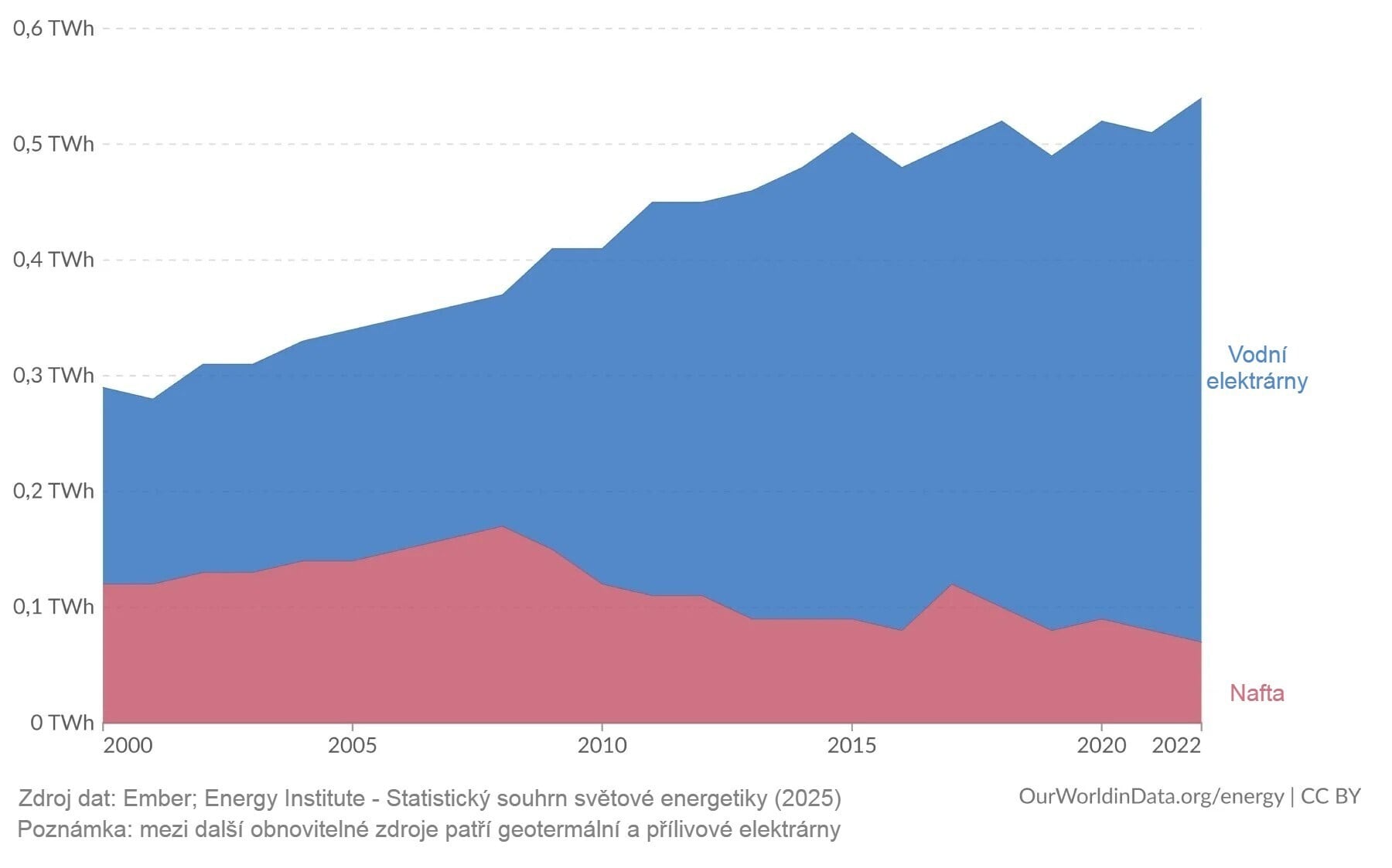Vodní elektrárny stojí až za 87 % výroby elektřiny v Grónsku. Zbytek je z valné většiny nafta. Zdroj https://ourworldindata.org/profile/energy/greenland