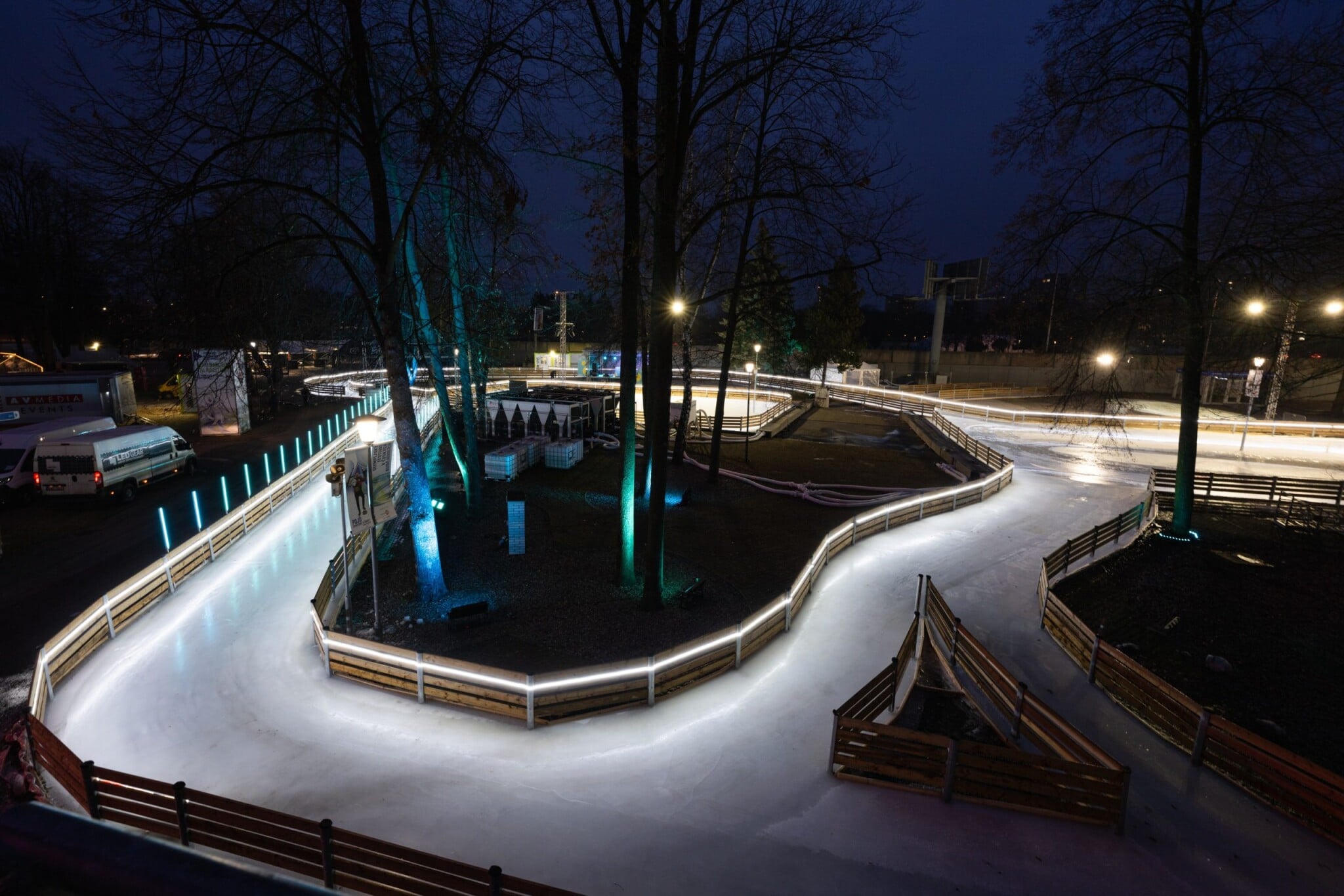Středobodem festivalového dění bude led. Celkem ho organizátoři připravili neuvěřitelných pět tisíc metrů čtverečních. Fanoušky čekají rozlehlé dráhy pro bruslení i hokejové a krasobruslařské kluziště a chybět nebudou ani čtyři curlingové dráhy pod širým nebem.
