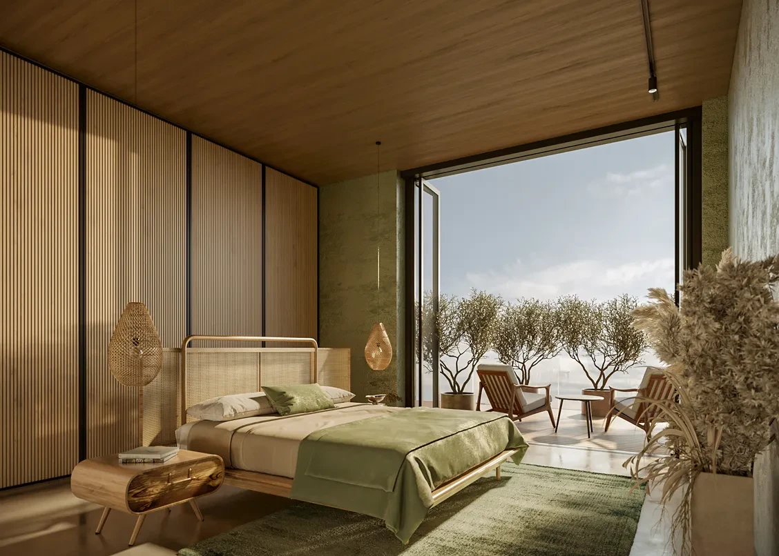 Materiály, barvy a také vybavení bytu mají u obyvatel vyvolat hlavně klid. Do penthousu se dostanete přímo soukromým výtahem a vedle výběrových materiálů a terasy v něm najdete třeba i posilovnu nebo wellness.