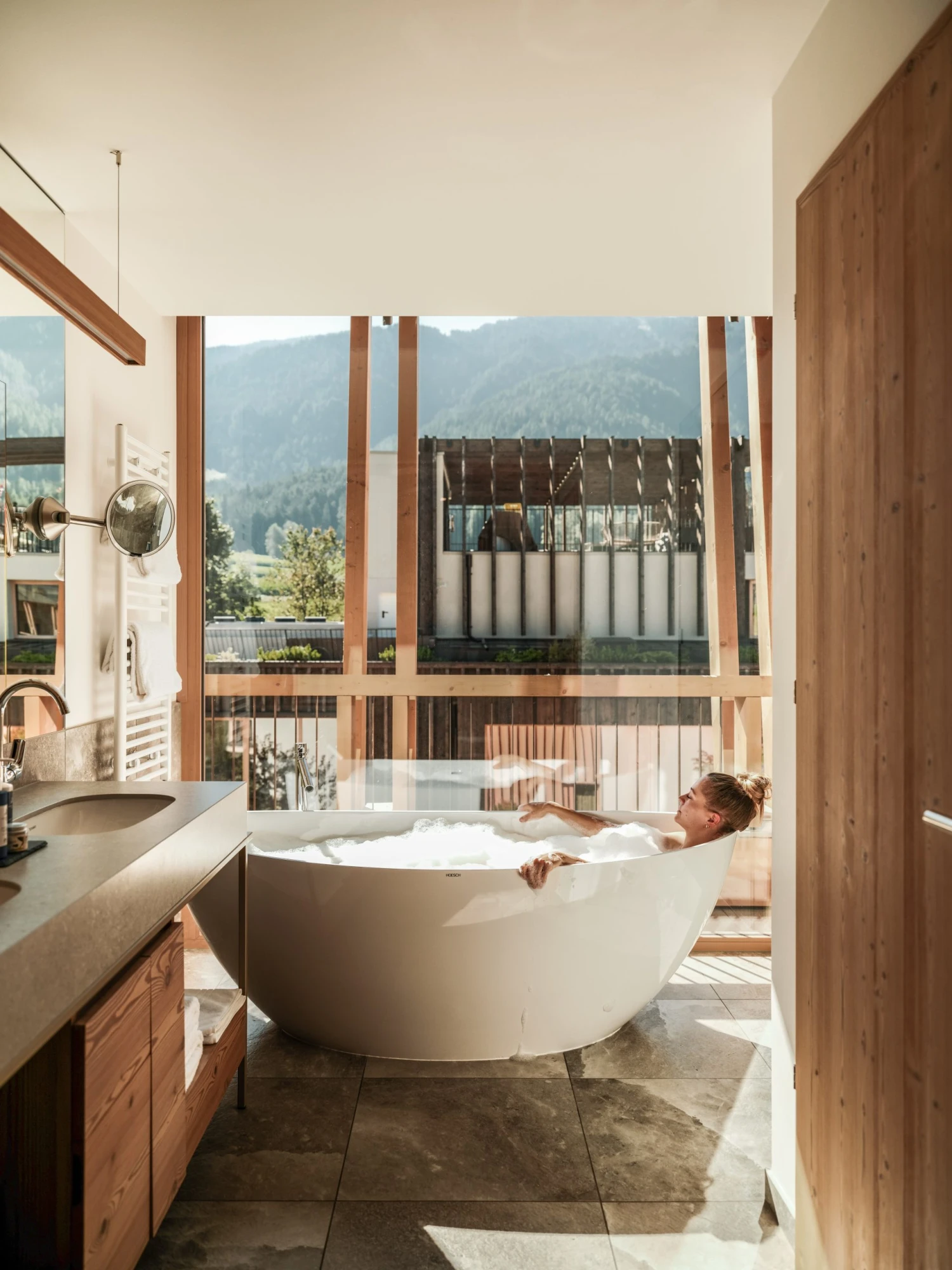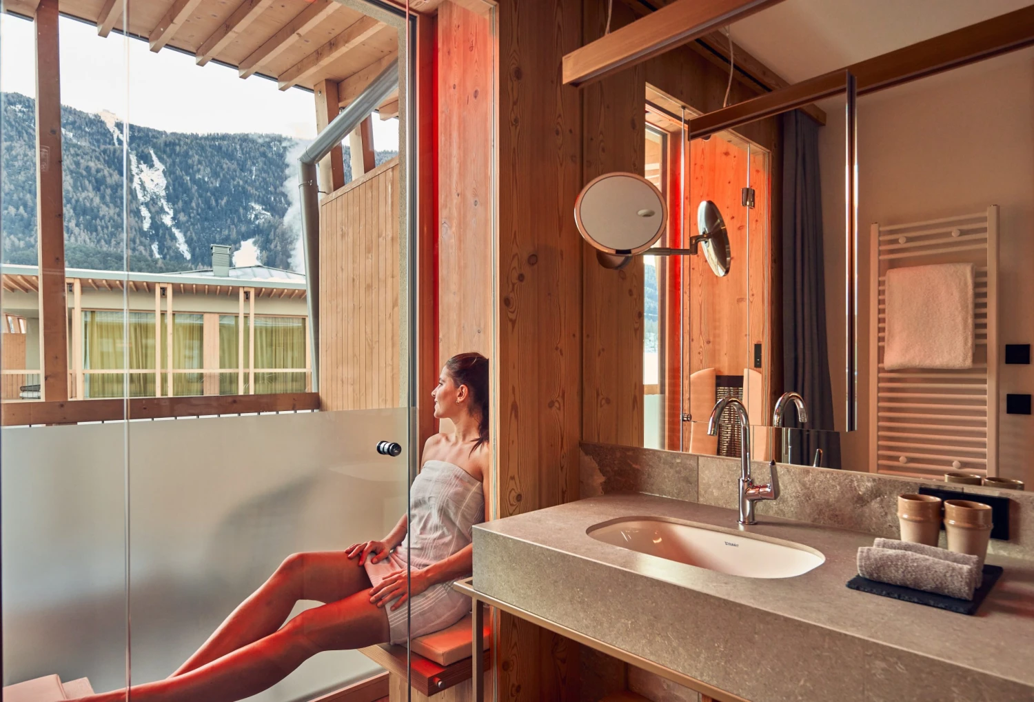 Architektura jihotyrolského architekta Mattea Thuna dotváří celkový pocit harmonie. Přírodní materiály, světlo, čisté linie a otevřené prostory vytvářejí prostředí, kde se tělo i mysl uvolní téměř okamžitě.