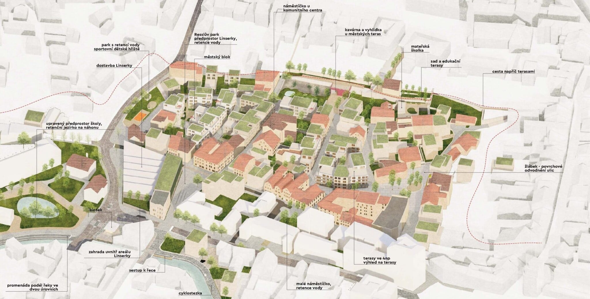 Cílem bylo navrhnout, jak v celém území stavět, kudy povedou uličky, cesty, jak budou vysoké domy. Městskému bydlení vtisknout netradiční design a s citem zrekonstruovat i bývalou tovární budovu Linserku, kterou radnice nedávno získala do svého vlastnictví. Secesní třípatrový dům je posledním, který zbyl po továrním areálu založeném v roce 1858 Christianem Linserem, a vznikaly v něm první vozy automobilky RAF.