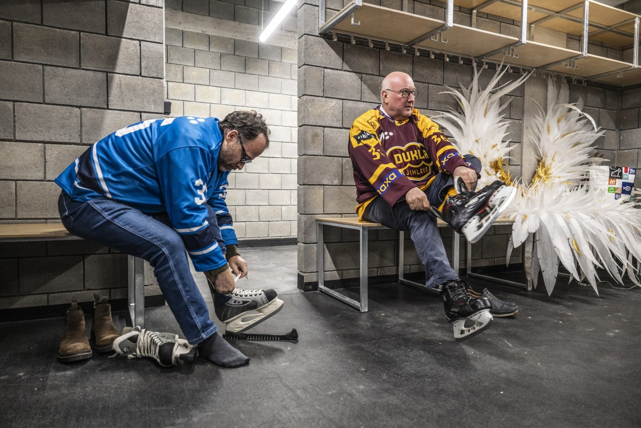 První jmenovaný má s hraním hokeje bohaté zkušenosti. Druhý jmenovaný má bohaté zkušenosti s hraním hokeje na PC. Teď si však skutečné brusle nazuli oba a naskočili na zbrusu novou jihlavskou ledovou plochu.