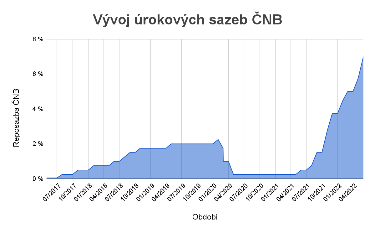 Podepisují se na tom například rostoucí úrokové sazby, které lidem podražují hypotéky. Mezi loňským a letošním květnem Česká národní banka zvedla kvůli vysoké inflaci svou základní sazbu z 0,25 procenta na 5,75. Ve středu bankovní rada přitvrdila ještě víc a posunula ji na sedm procent.