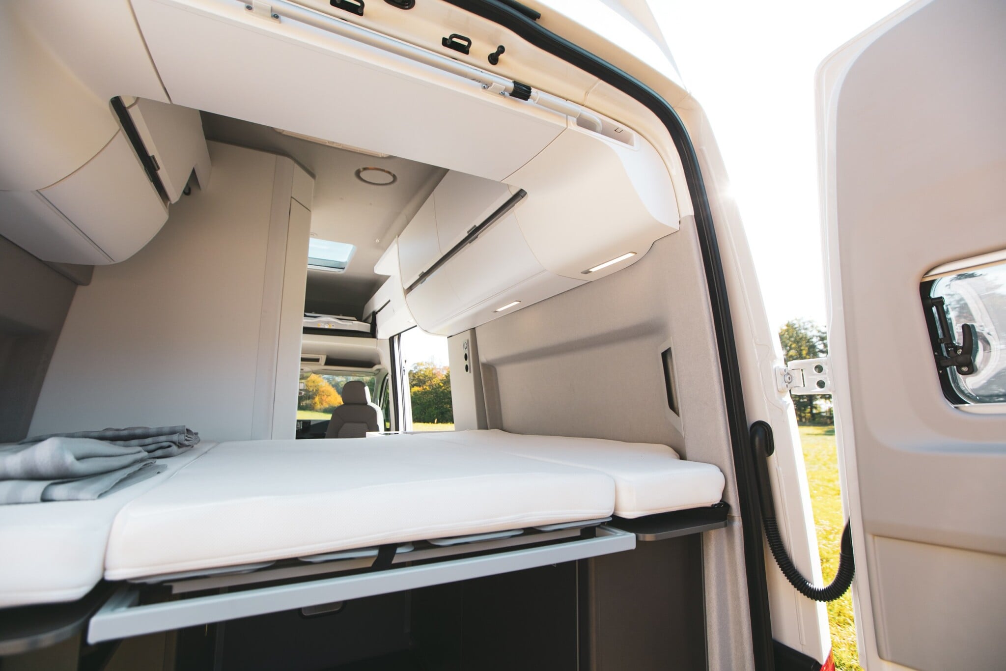 Pokud jde o spaní, dva dospělí najdou místo na dvoulůžku v zadní části kabiny. Děti pak šplhají pod střechu na vysouvací postel nad místem pro řidiče a spolujezdce. Kdyby tam ale z nějakého důvodu chtěli spát dva dospělí, měli by se připravit na torturu.