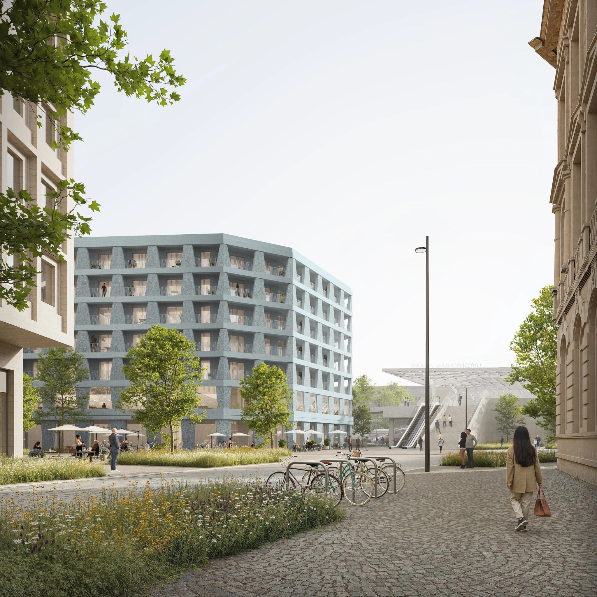 Blok je navržen jako tradiční pražský rezidenční blok se soukromým vnitroblokem a provozovnami v parteru. Na severu bude přímo navazovat na výstup ze stanice metra Florenc.