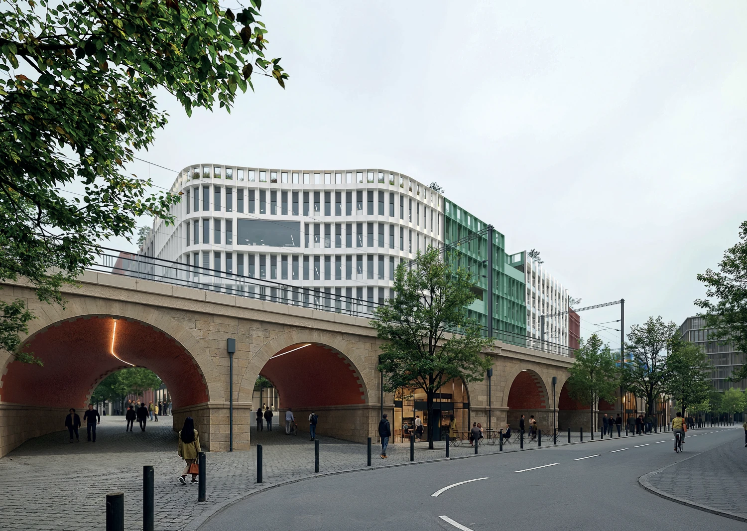Vítězem soutěže o návrh bloku B01 při ulici Na Florenci je dánská architektonická kancelář Adept spolupracující na projektu s českým studiem ohboi. Ti navrhli dva administrativní objekty obklopující magistrálu, které budou rovněž bránou do nové čtvrti. Součástí návrhu je i dočasná stavba „pop-up“ marketu s food-courtem pod magistrálou.