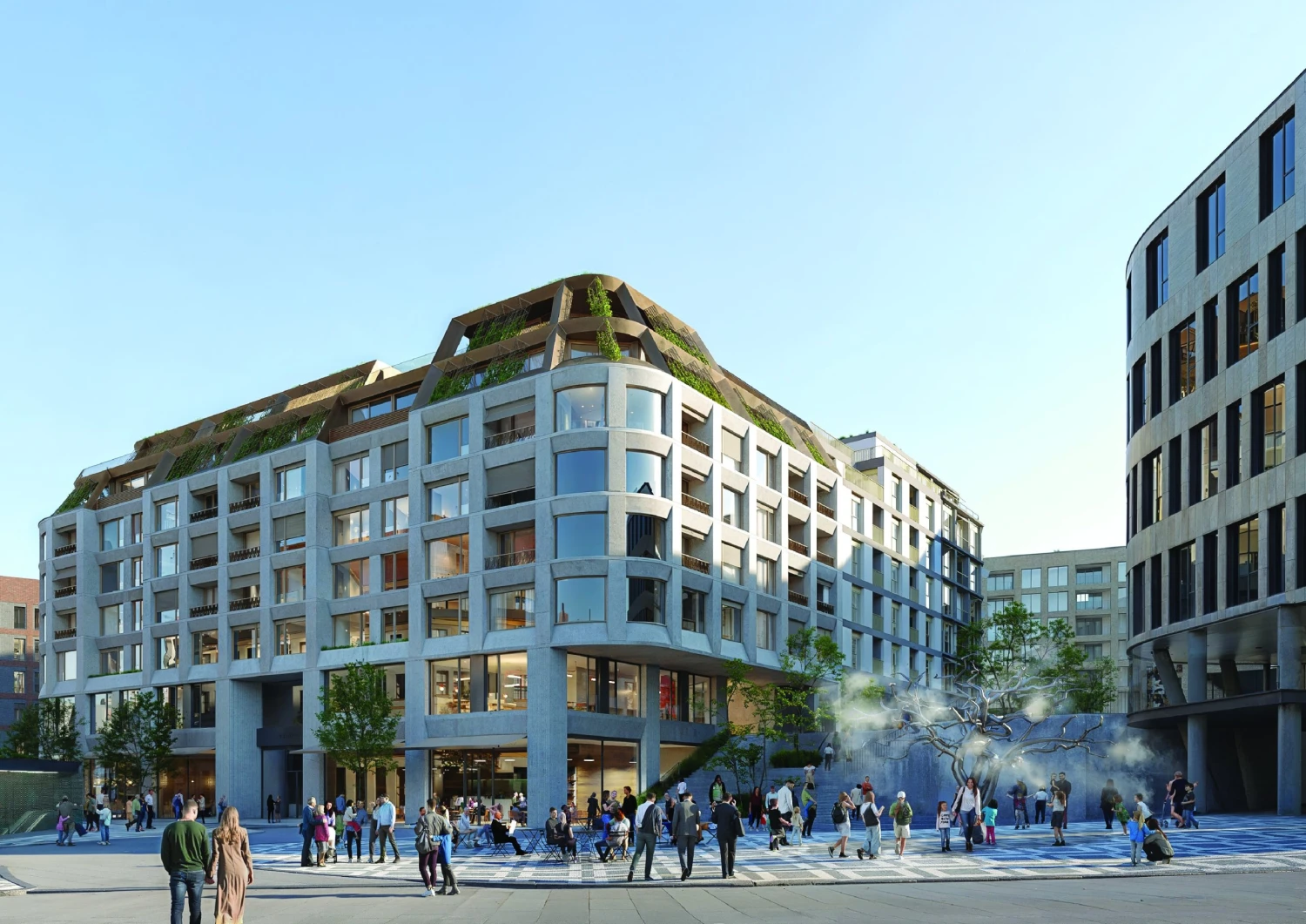 Vítězem soutěže o návrh rezidenčního bloku B02 se stalo konsorcium českých architektonických kanceláří Aulík Fišer architekti, Machar & Teichman a studio reactor ve spolupráci s krajinářským ateliérem Partero. Návrh rozděluje blok na tři celky, které svým výrazem odkazují na architekturu okolních čtvrtí: Karlína, Žižkova a Nového Města, zároveň si zachovávají jednotnou identitu.