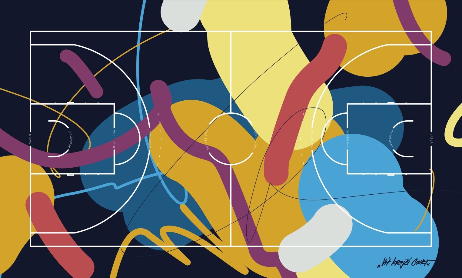 Návrh designu hřiště vznikl v rámci spolupráce s agenturou Sport in Art, která se specializuje na skloubení sportu a umění. Autorem hřiště je Martin Kafes.