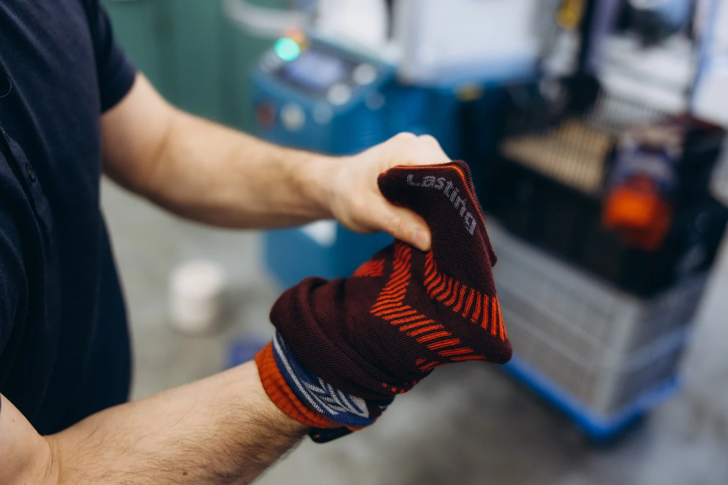 A pak je tu ještě jedna rovina. Lasting přesně ví, co používá, odkud surovina pochází, jak se látka chová, o kolik se srazí, jak se barví a jakou práci udělal konkrétní stroj. Ani v tomto nepřichází outsourcing v úvahu.