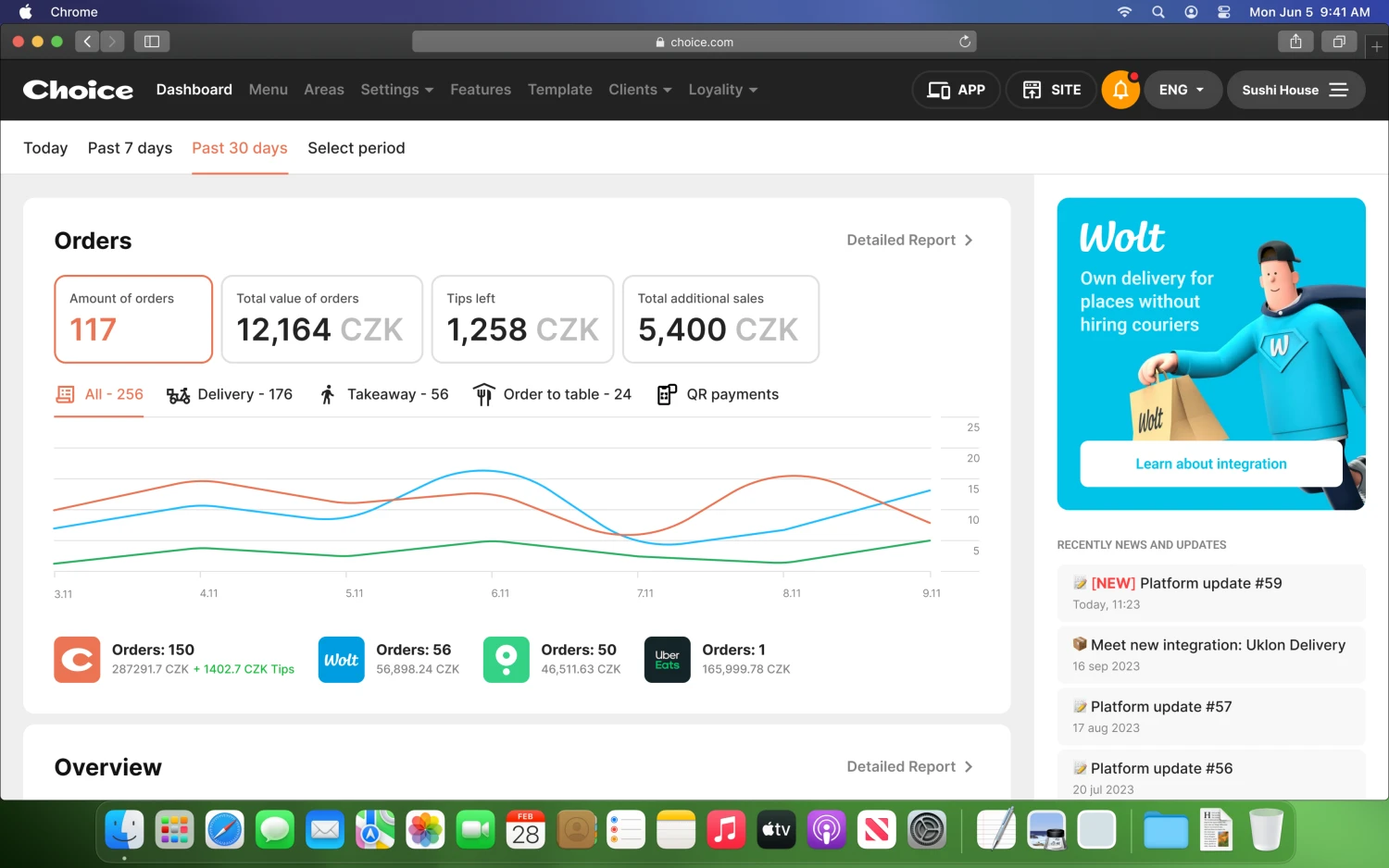 Choice restauracím nabízí i integraci se službami Wolt, Bolt a Foodora, včetně spravování objednávek ze všech tří na jediném místě. Umí také pokladní systémy od Storyous nebo Dotykačky.