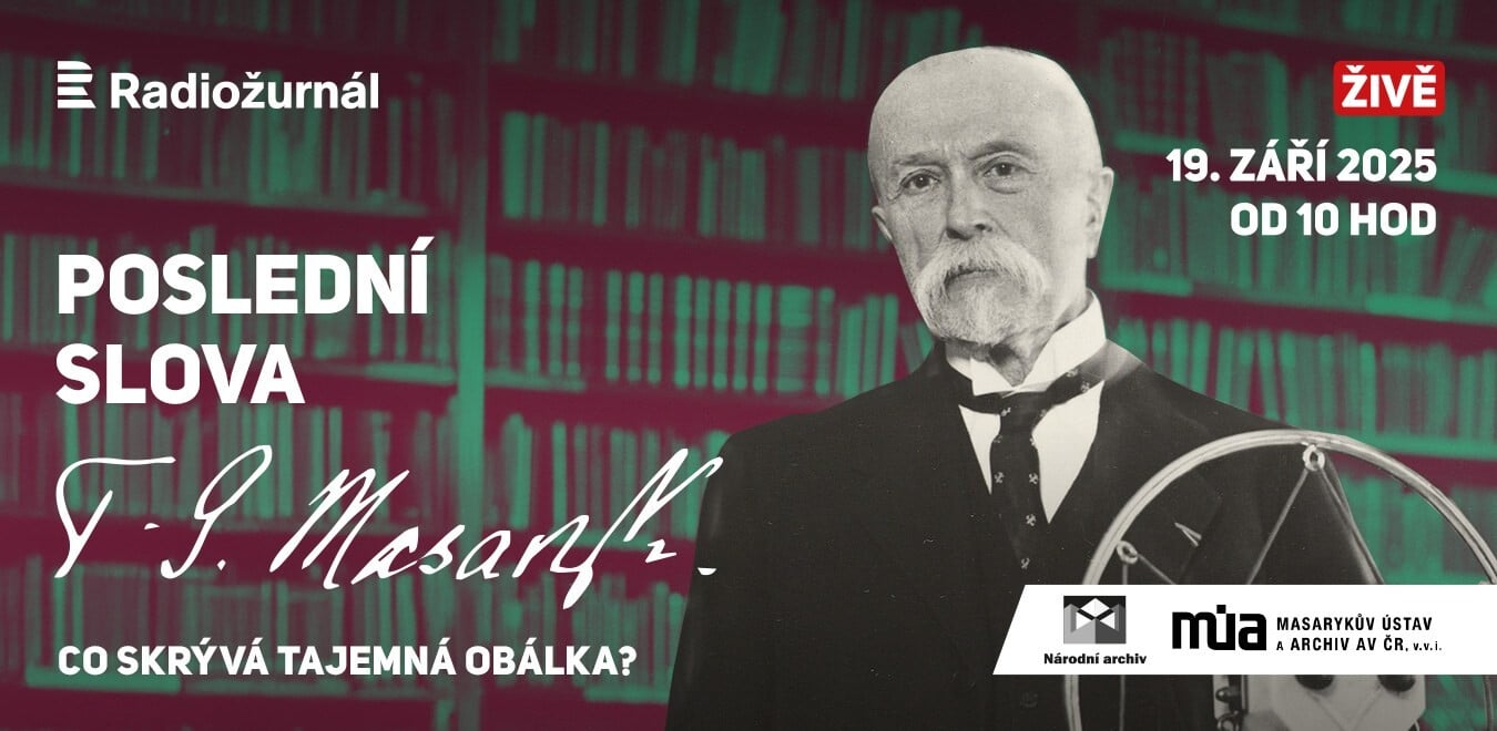 19. září 2025 se otevře kus historie. V přímém přenosu Radiožurnálu se v Lánech rozpečetí tajuplná obálka, kde by měla být poslední zaznamenaná slova Tomáše Garrigua Masaryka. Jaké byly poslední dny prezidenta osvoboditele? Poslouchejte živě 19. září od 10 hodin.