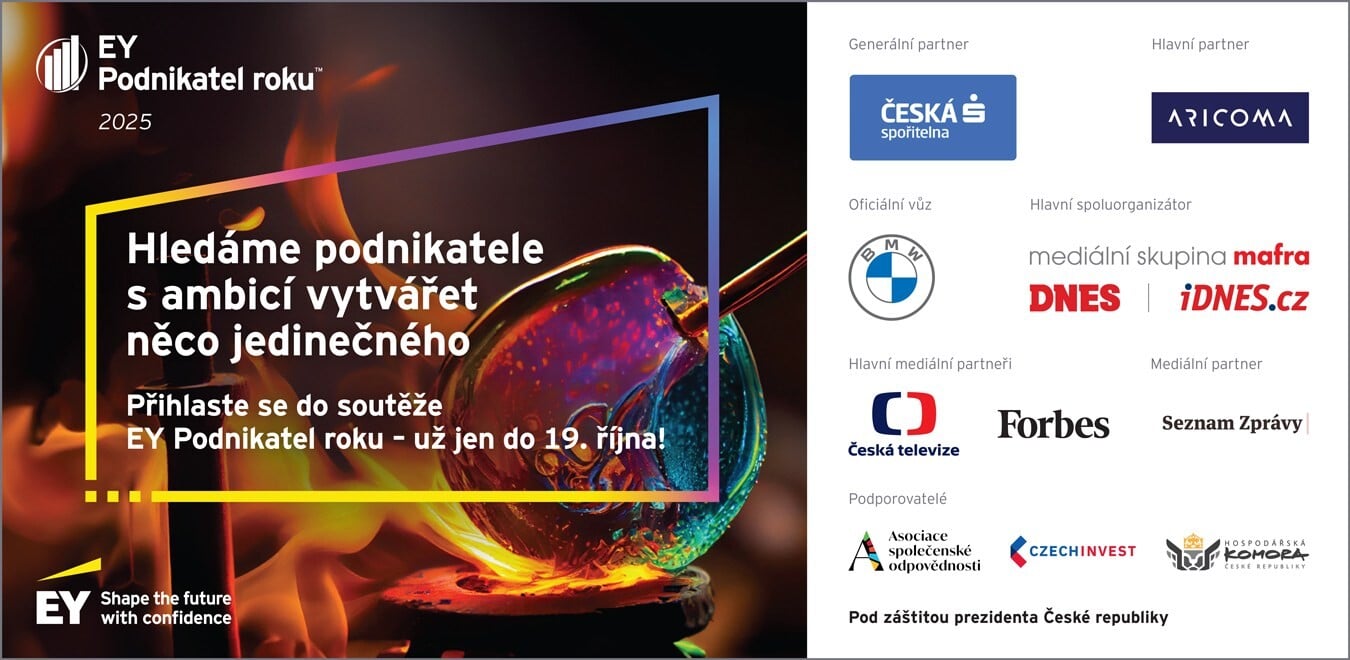 Už jen do 19. října se mohou hlásit inspirativní podnikatelé do soutěže EY Podnikatel roku. Přihlaste se nebo nominujte svého kandidáta a dejte šanci vyniknout těm, kdo udávají směr českého podnikání.