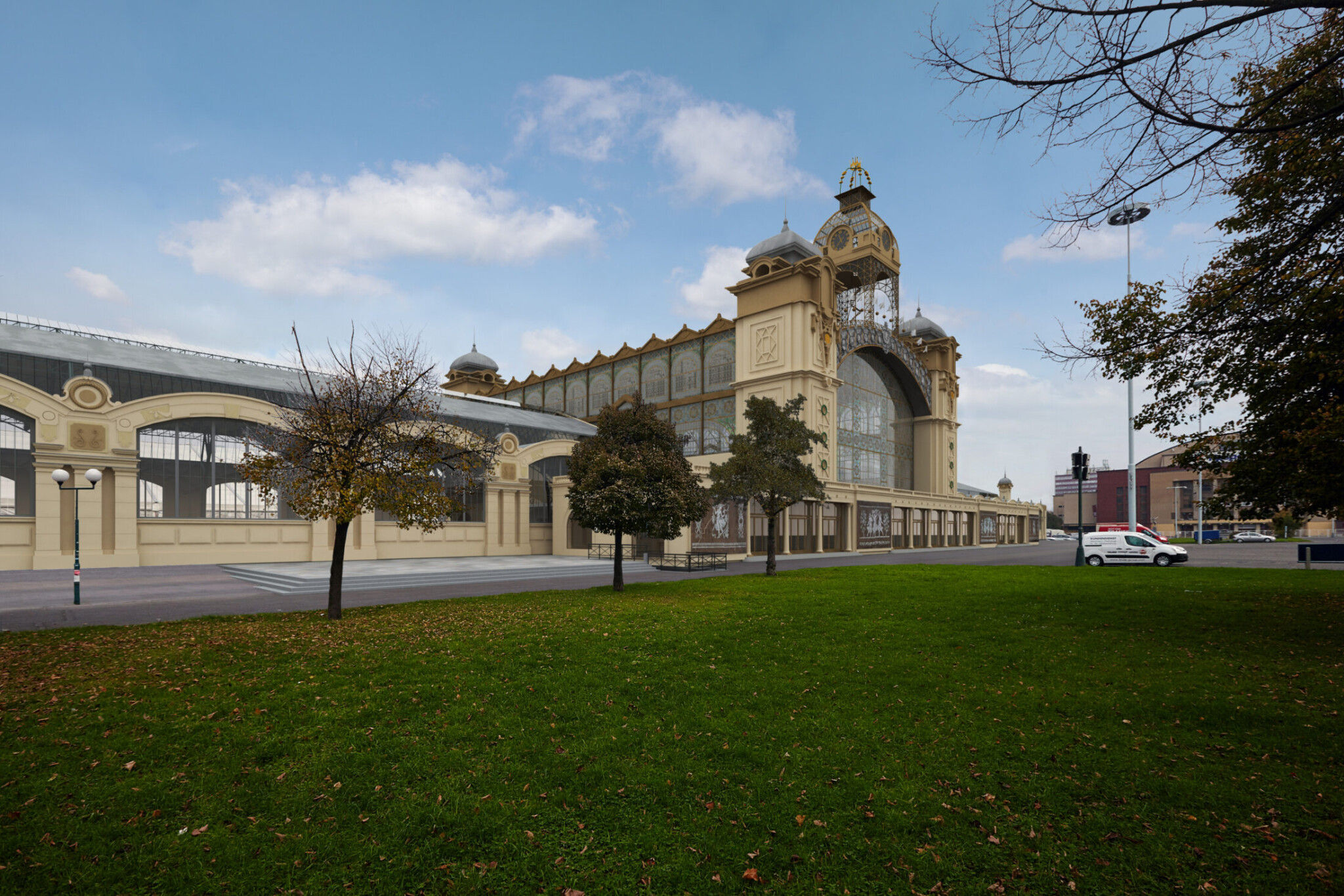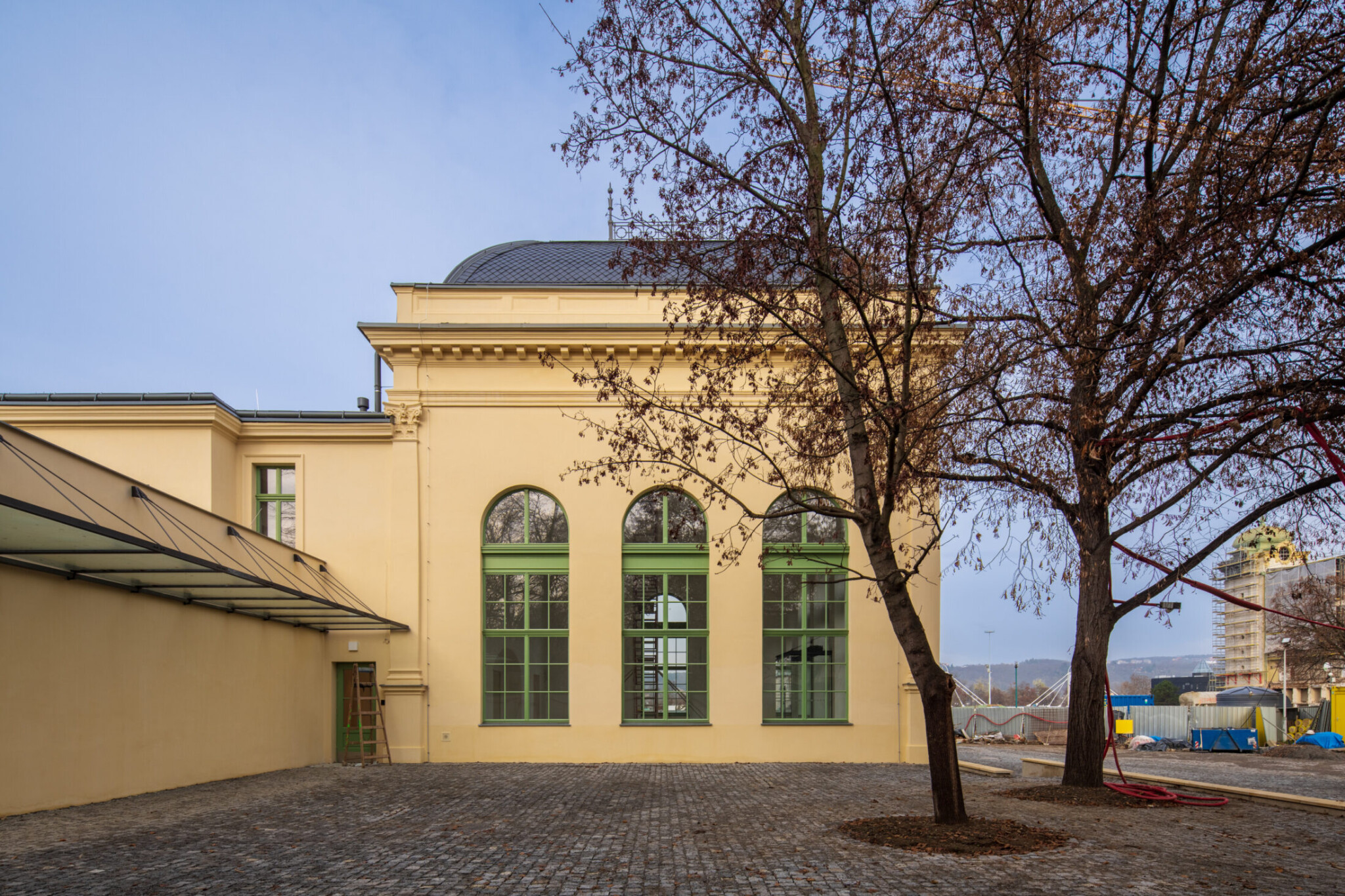Oprava vyhořelého křídla Průmyslového paláce začala loni v únoru a trvat by měla ještě zhruba dva roky. Palác, který byl vystavěn v roce 1891 podle projektu architekta Bedřicha Münzbergera, přišel o své levé křídlo už v roce 2008. Až v roce 2019 ale Praha získala na dostavbu stavební povolení. Novostavba zničené části paláce má být tvarovou replikou původního industriálně pojatého křídla a získá nový suterén.