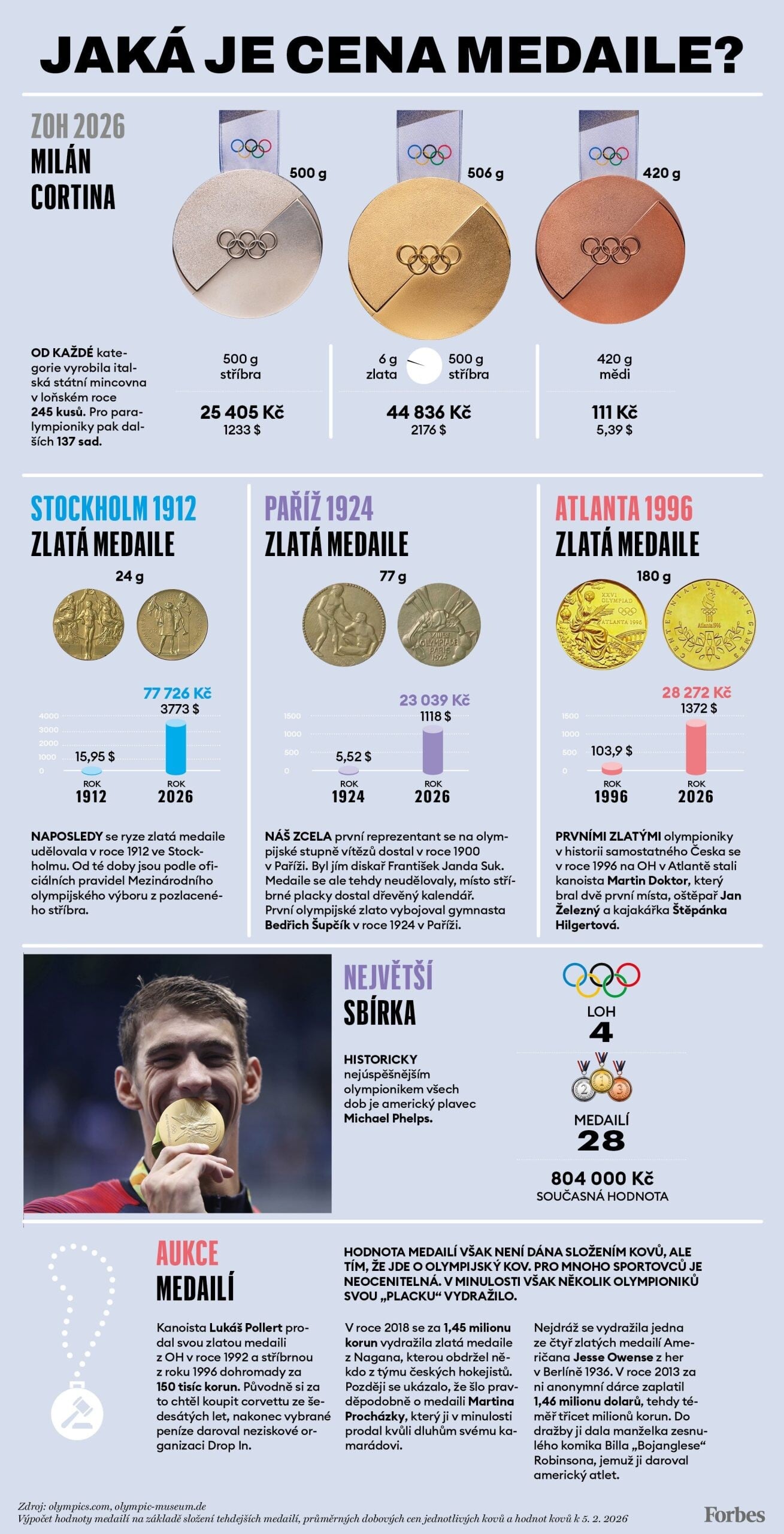 Ne nadarmo jsou medaile vybojované pod pěti kruhy označovány za cenné kovy. Pokud se podíváme na to, za kolik se prodávají na trhu materiály, z nichž jsou vyrobeny, tak si úspěšní sportovci z letošní olympiády v Milánu a Cortině odvezou nejdražší medaile v historii.