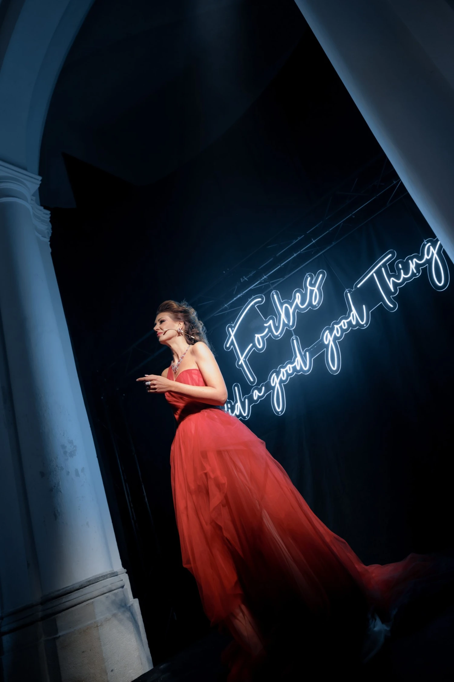 Neonový nápis „Forbes did a good good thing“ k fotostěně zprostředkovala firma Neony.cz.