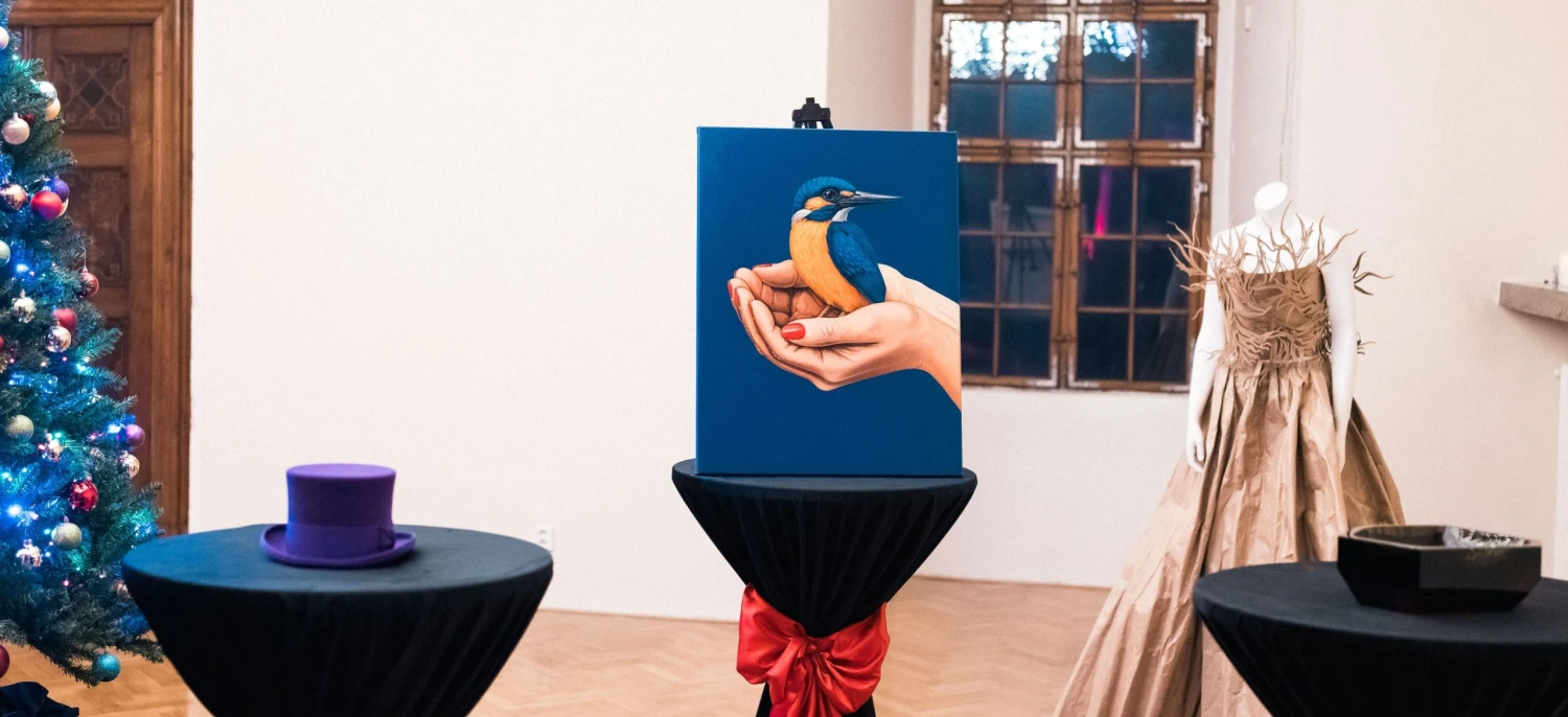 Obraz Harmonie s modrým ledňáčkem v lidských dlaních věnovali do dražby Adam Jílek, umělec a člen výběru Forbes 30 pod 30, společně se Šuchratem Saidovem, jehož Silon má ledňáčka ve znaku.