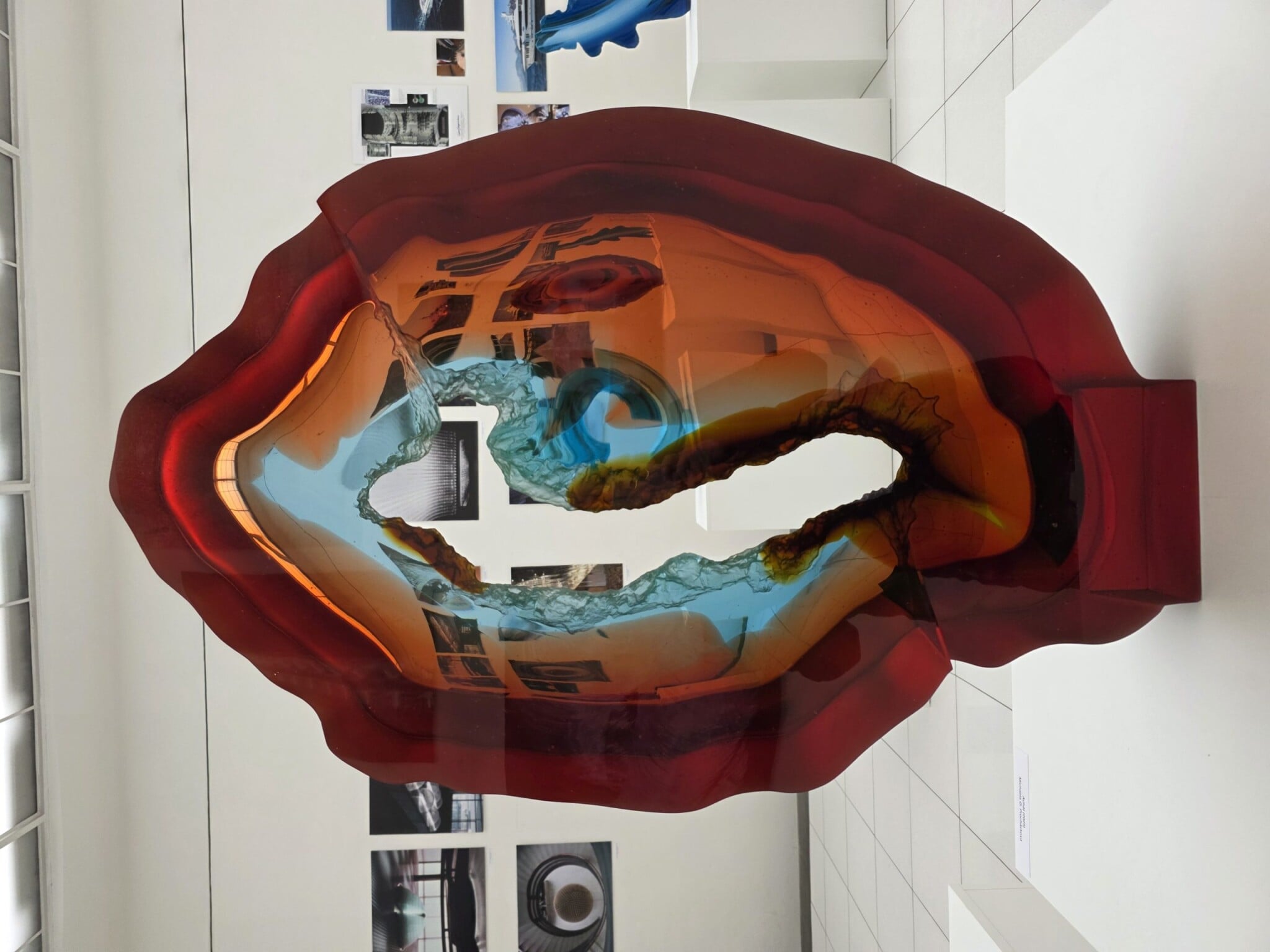 „V každém okně jsou zasazeny dvě skleněné desky, které jsou směrem dovnitř seříznuté, čímž vznikla iluze zrcadlového rámečku,“ popisuje výtvarník.
