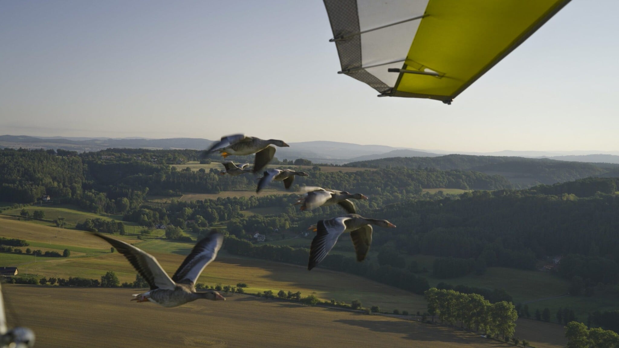 Hned jim ukázal i rogalo, se kterým je chtěl naučit létat. Jenže to je hlučné, smrdí a husy se ho bály, a tak vymýšlel, jak to udělat. „Šel jsem na to jako Komenský, postupně, po malých krůčcích,“ říká muž, který je původním vzděláním učitel zeměpisu a tělesné výchovy. Pedagogické dovednosti se osvědčily i u hus.