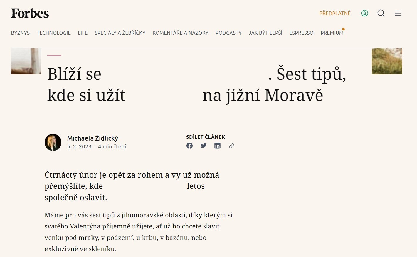 Jak si filtr poradil s valentýnským článkem na Forbes.cz…
