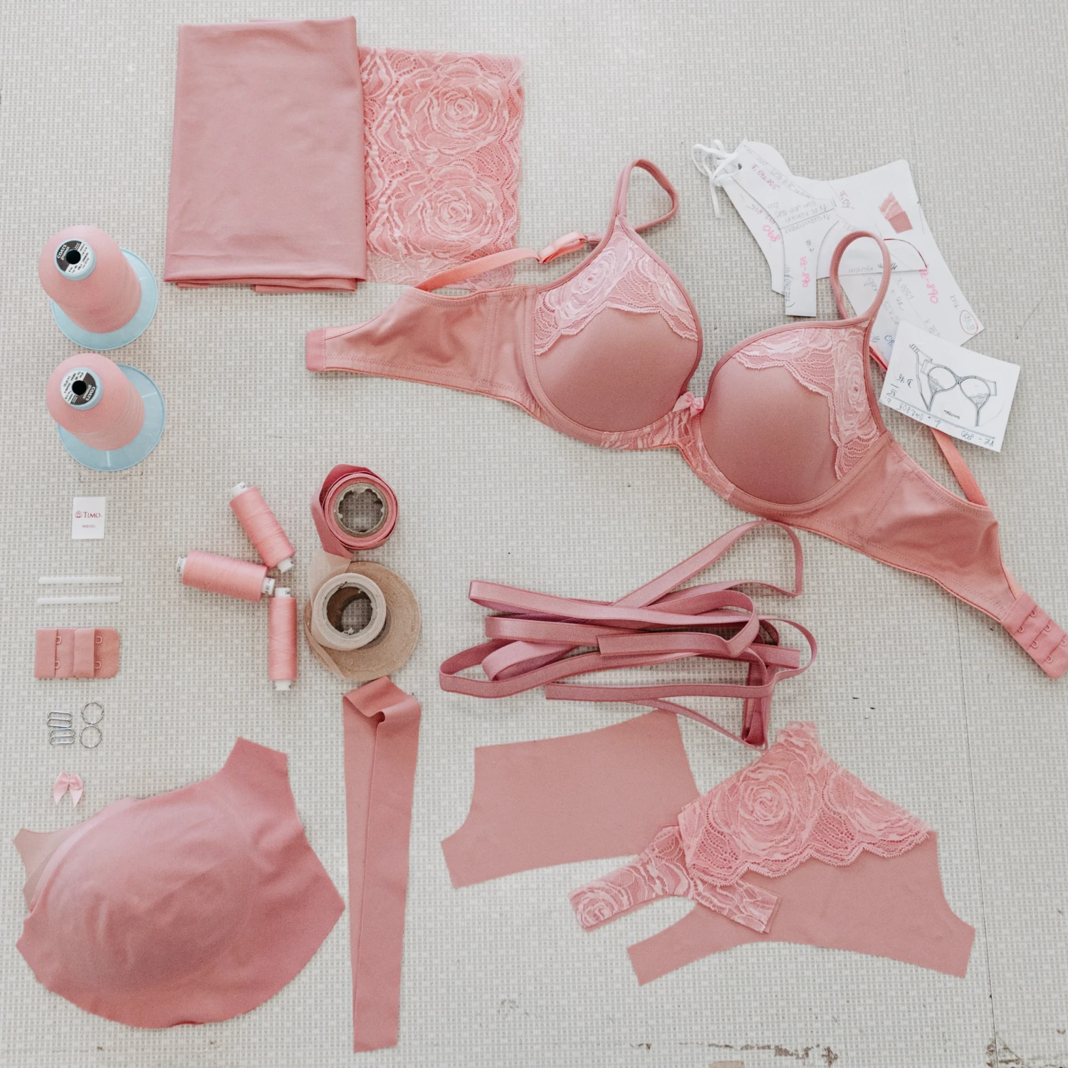 Timo se řídí mottem, že oblékne každou ženu. Každý výrobek, poté, kdy se vytvoří základní návrhy, dělají nejdříve ve velikosti D75, pak jej stupňují do dalších velikostí a testují, jak sedí. Na to musí být bezchybně zorganizovaná výroba, aby každý dílek dané velikosti směřoval skrze celou šicí dílnu až k výsledku a nikde nedošlo k záměně.
