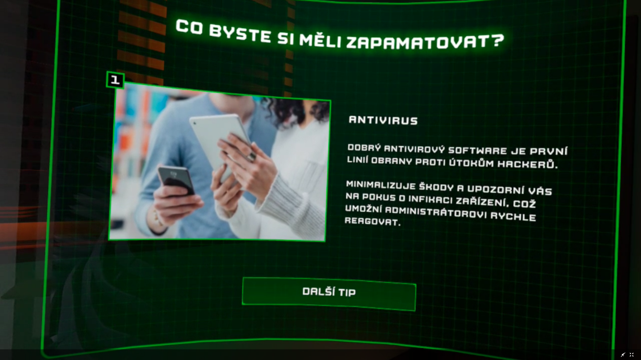Na konci každého levelu hry je vyhodnocení, kde se školený na okamžik z role hackera vymaní a dozví se, na co si má dávat pozor, aby nezpůsobil sobě nebo organizaci problém.