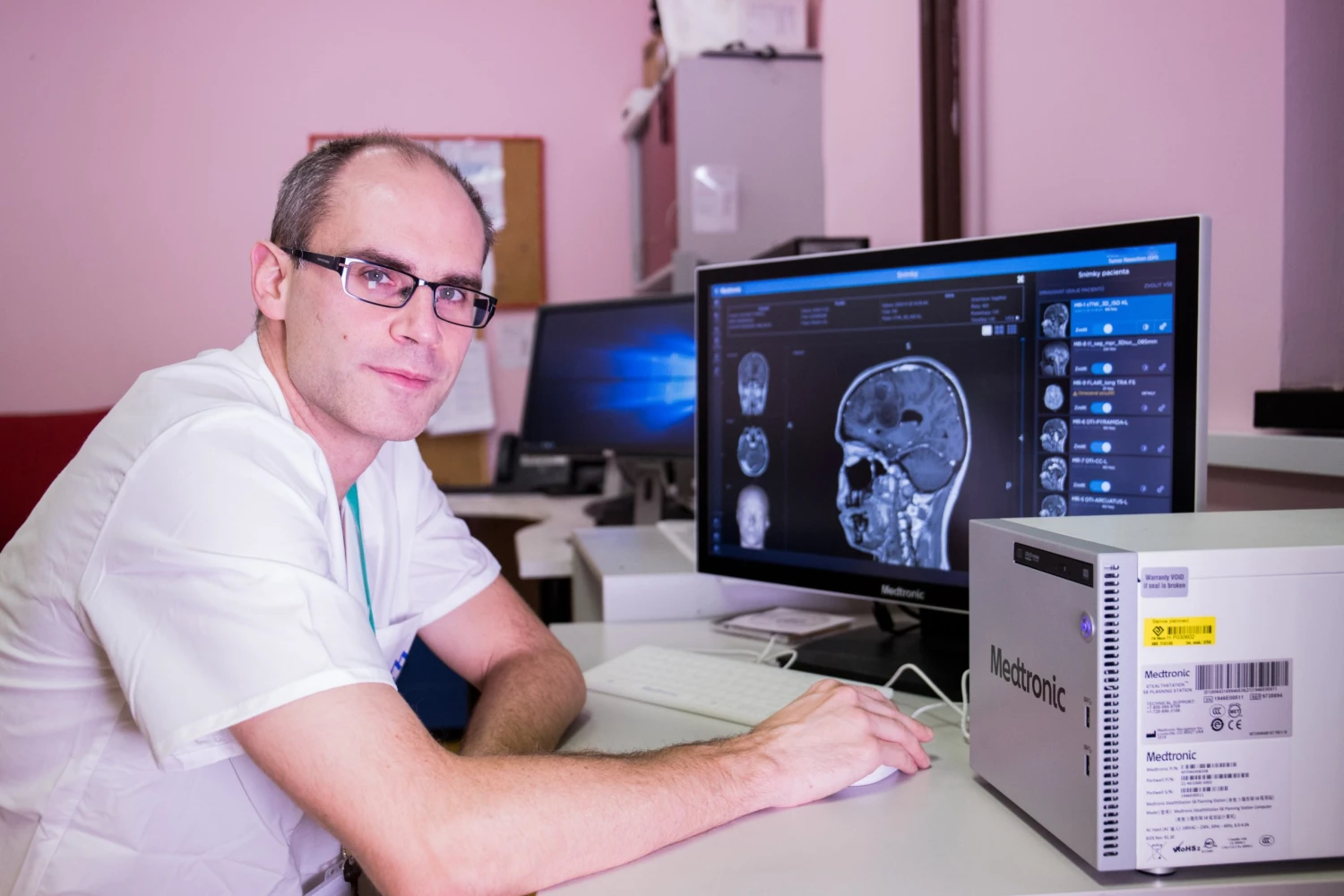 Díky diagnostice do toho jdeme už připravení a víme, kde co bude nebo kde by to mělo být. Třeba na osmdesát až devadesát procent tak vím, kde budou nervy v zadní jámě, než jdu operovat velký nádor. Nebo vím na sto procent, kde je najdu. A pak se po nich vracím zpátky.