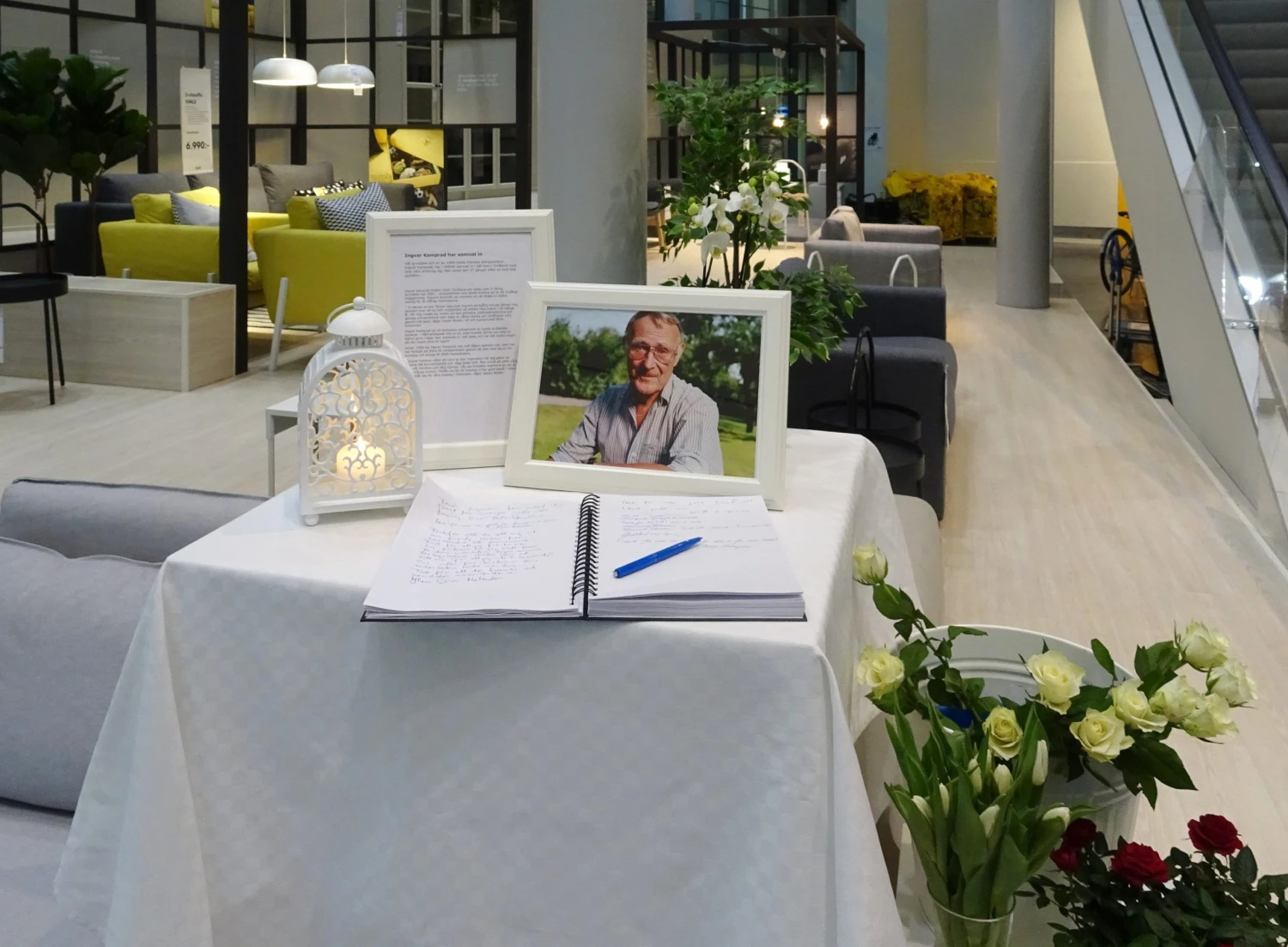 Kniha kondolencí v obchodě IKEA po úmrtí Ingvara Kamprada