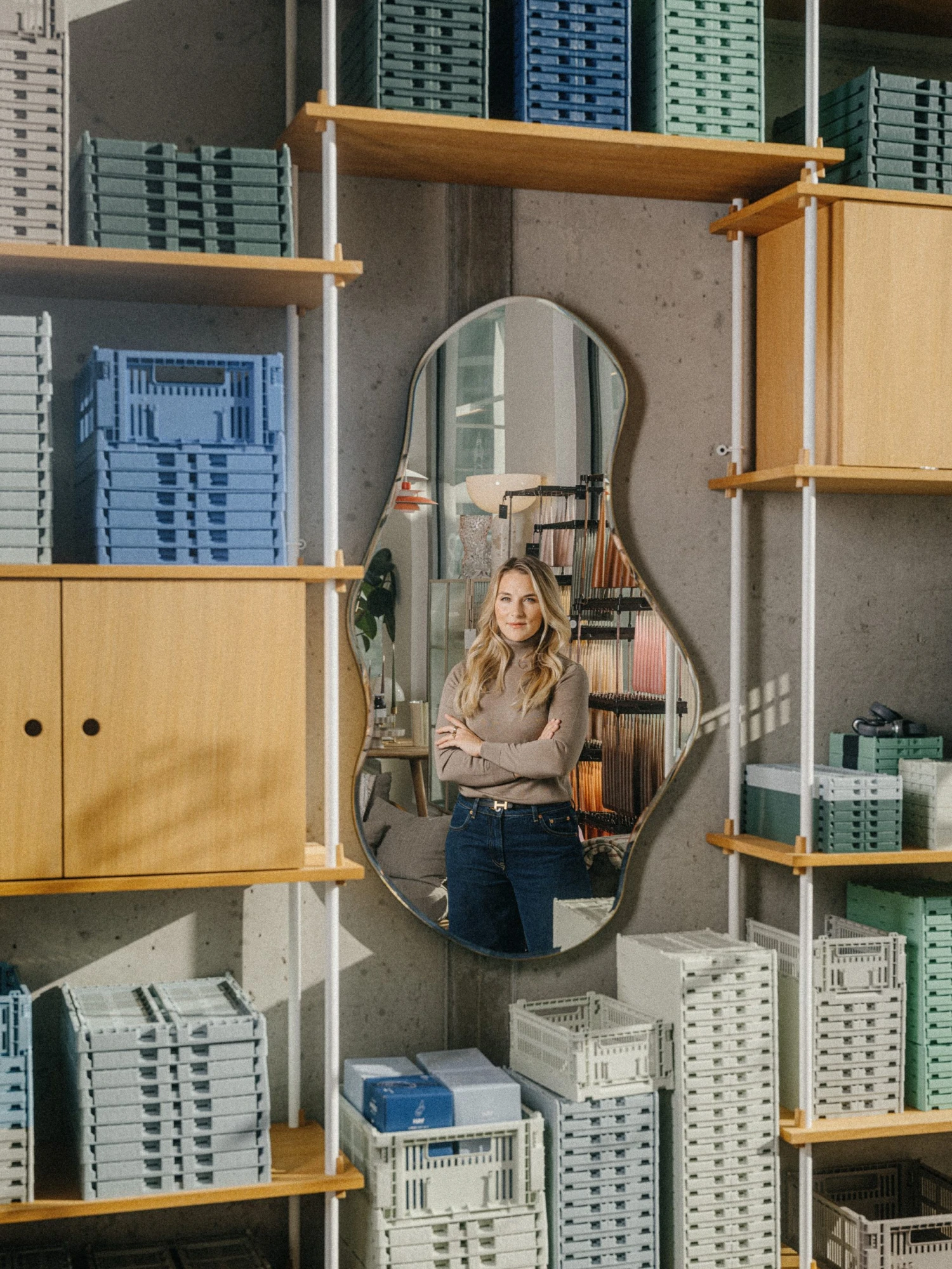 „Učíme maminky, že věcí nemusejí mít hodně. Důležité je, aby jim věci vydržely a aby byly kvalitní a mohly je pak i poslat dál,“ vysvětluje koncept, zatímco společně sedíme v její prodejně na Smíchově. Ta slouží zároveň jako showroom. Podle ní má být malou Kodaní v Praze. Vřelým místem, kam chodí zákazníci i s dětmi nakupovat, relaxovat, případně se jen porozhlédnout.