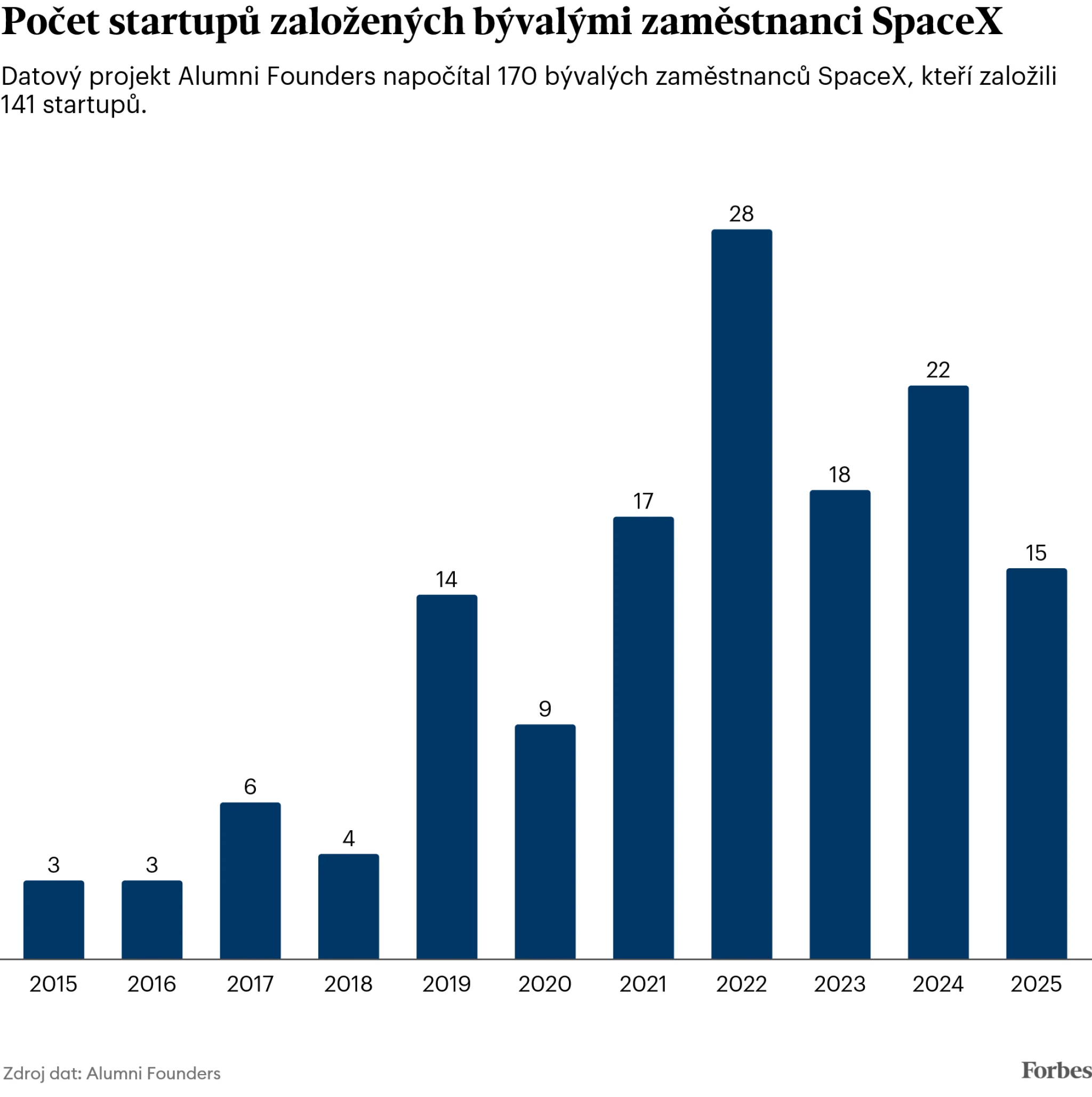 Startupy založené bývalými zaměstnanci SpaceX (v oblastech vesmírných technologií, umělé inteligence, energetiky, mobility a dalších) celkem získaly za poslední desetiletí 10,6 miliardy dolarů (219,1 miliardy korun) a vytvořily více než sedm tisíc nových pracovních míst.