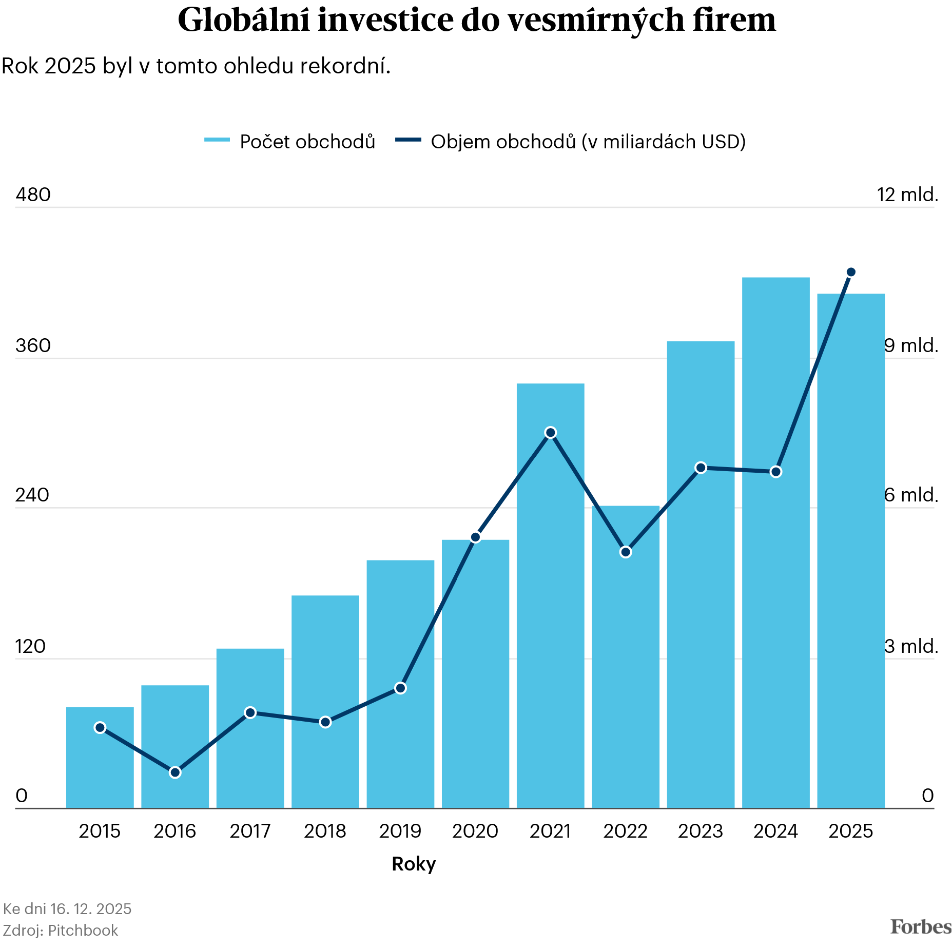 Globální investice rizikového kapitálu do vesmírného sektoru