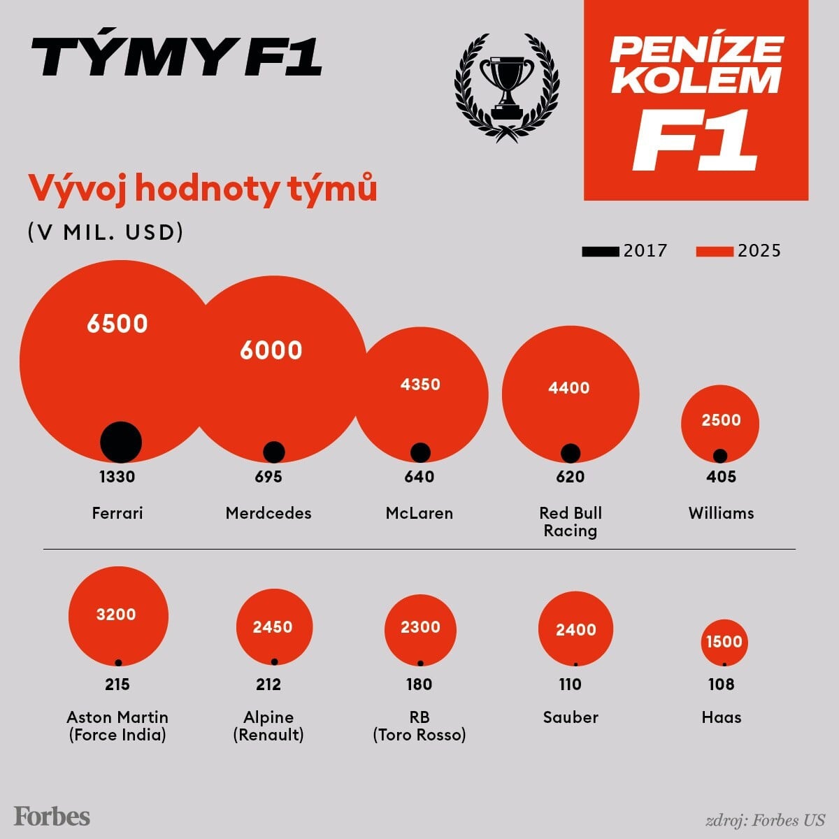 Více se o penězích kolem F1 dozvíte v grafech níže.