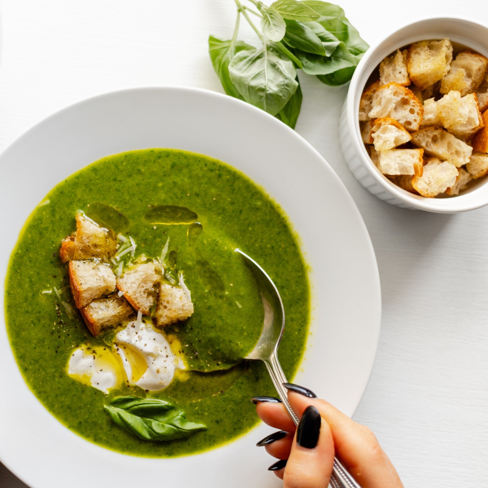 • Pokud honíte bílkoviny, servírujte špenátovou polévku s pošírovaným vejcem nebo trhaným masem z vývaru.